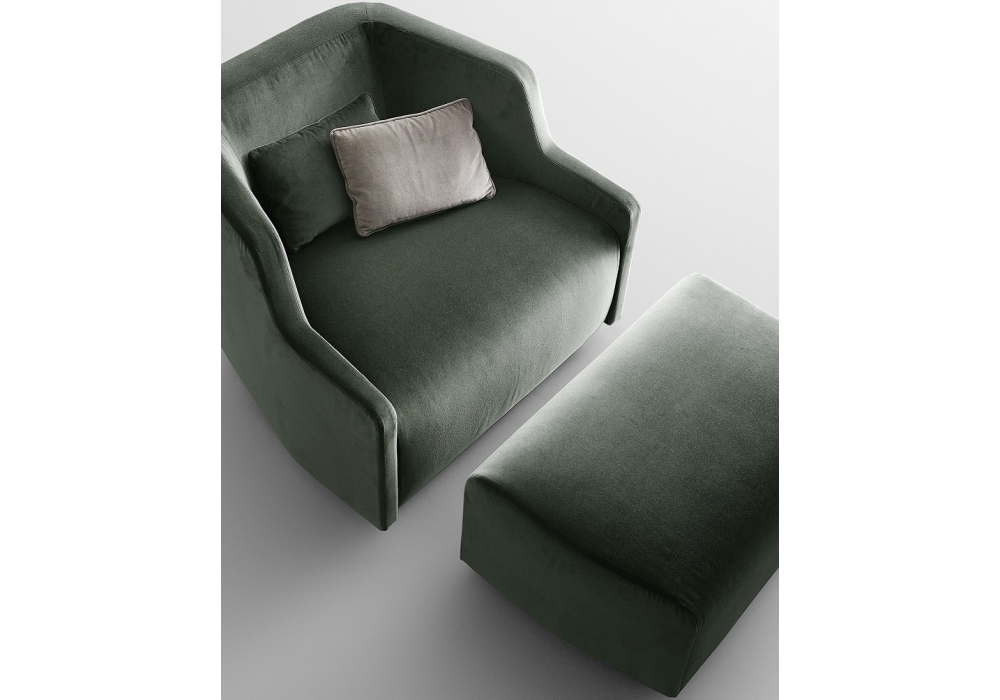 First von Massimo Castagna für Gallotti&Radice entworfen, ist ein Armstuhl aus unverformbarem Polyurethanschaum mit unterschiedlicher Dichte und Polyesterfaser mit Innengestell Holz. Füsse Holz schwarz lackiert. Lieferbar mit Stoff oder Leder nach Musterkarte bezogen. Auf Wunsch Kissen aus Polyesterfaser.
