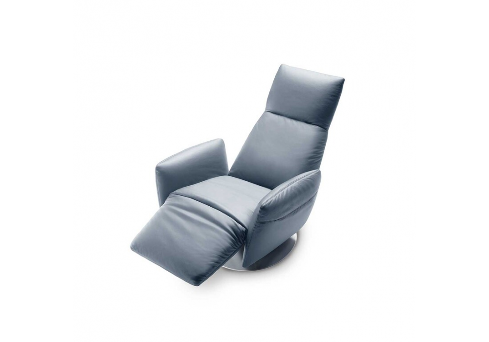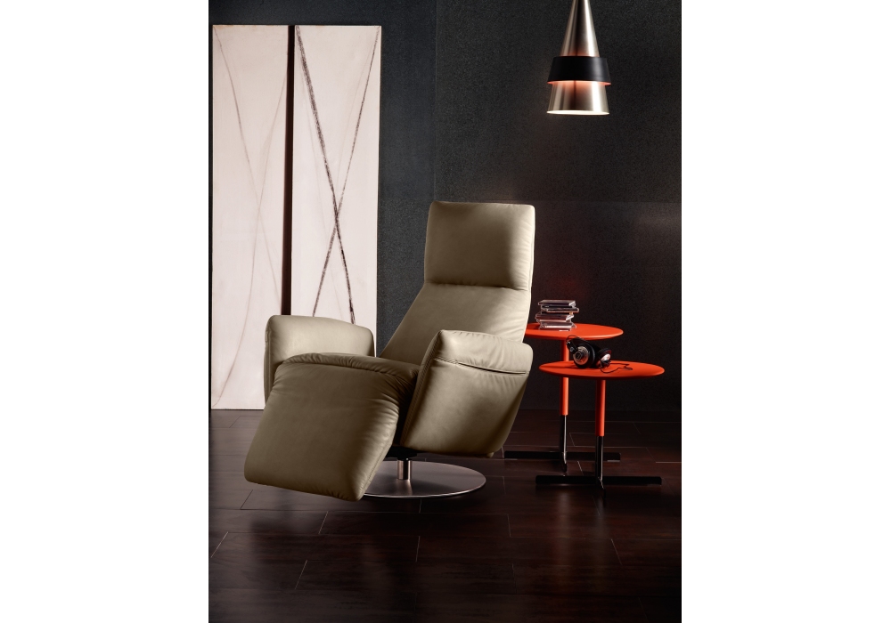 Pillow, von Poltrona Frau entworfen, ist ein Lehnsessel mit einer tragenden Struktur aus Metallrahmen und Birkensperrholzteilen. Der runde Flachstahlsockel ist in satinierter oder mattschwarz lackierter Ausführung erhältlich. Ein Mechanismus ermöglicht die Drehung des Sessels um 360°. Der Sessel lässt sich manuell oder elektrisch verstellen, in der Version mit Akku oder Netzbetrieb. Polsterung in Leder oder Stoff nicht abnehmbar.