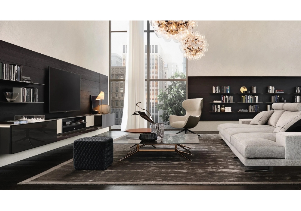 Mad Joker von Marcel Wanders für Poliform entworfen, ist ein Drehsessel mit lackiertem Metallgestell und Stoff- oder Lederpolsterung.