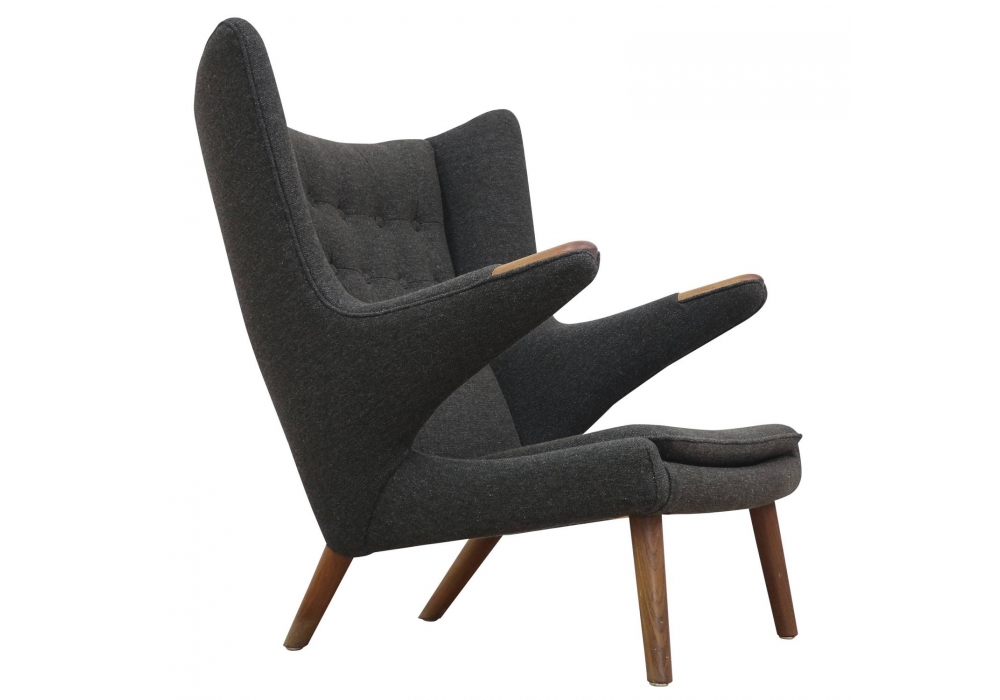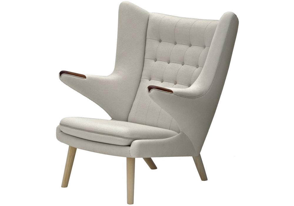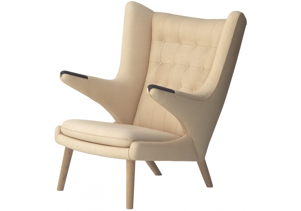 PP19 Papa Bear Chair designed by Hans J. Wegner for PP Møbler is an easy chair with wooden legs available in different finishes and upholstery in fabric or leather. The piping and buttons can be customized with leather or fabric.