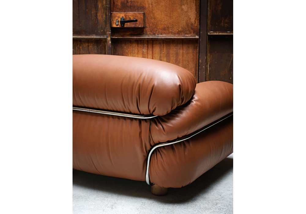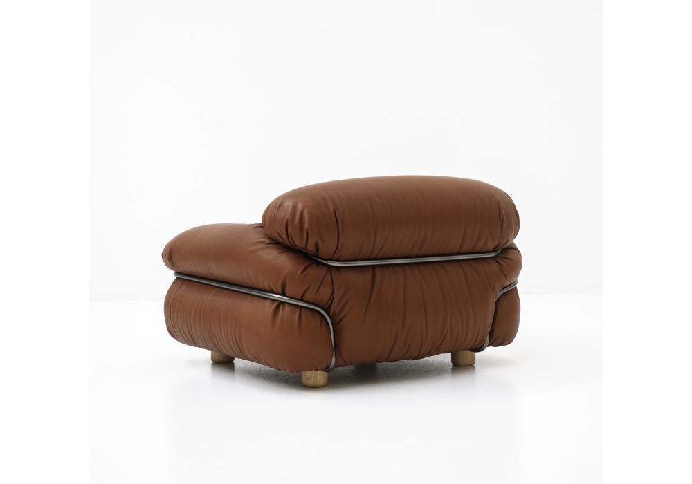 Sesann designed by Gianfranco Frattini for Tacchini is an armchair with structure in chromed or vanished finish and upholstery in fabric or leather. Die Füße sind aus Holz in verschiedenen Ausführungen.