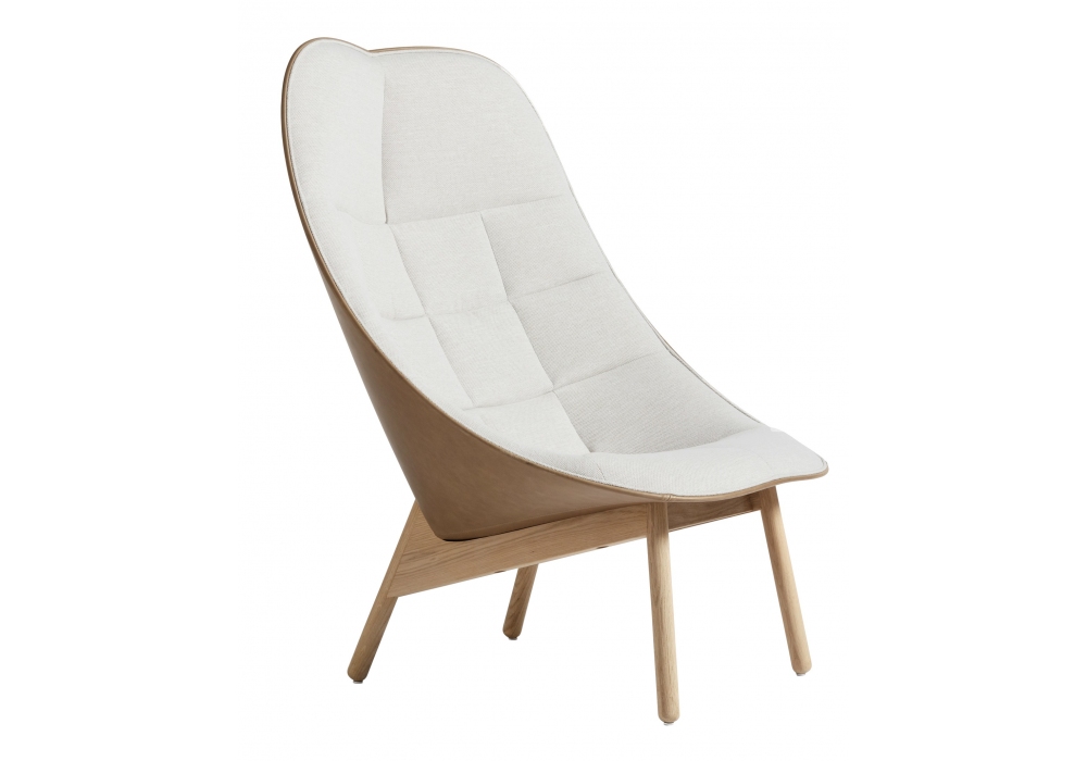 Uchiwa Quilt von Doshi Levien für Hay entworfen, ist ein Sessel mit Sitzschale, die mit HR-Polyurethanschaum gesteppt ist, der mit einer Schicht Watte für zusätzliches Volumen und Basis aus massiver Eiche geformt ist. Verfügbar mit verschiedenen Polsterungen.