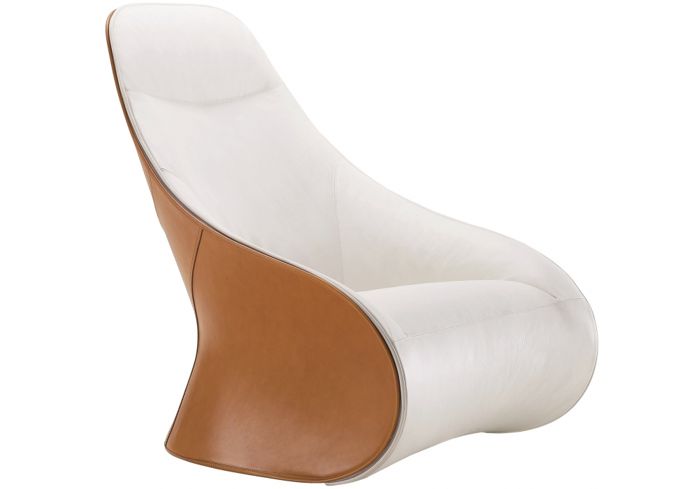 875 Derby von Noé Duchaufour Lawrance für Zanotta ist eine Sessel mit Stahlsockel, drehbar oder fest mit Füßen und äußere Sitzschale aus steifem Polyurethan, mit Kernleder 95 bezogen. Innere Sitzschale mit Polsterung aus Polyurethan/ wärmegebundener Polyesterfaser mit Federung auf elastischen Gurten.