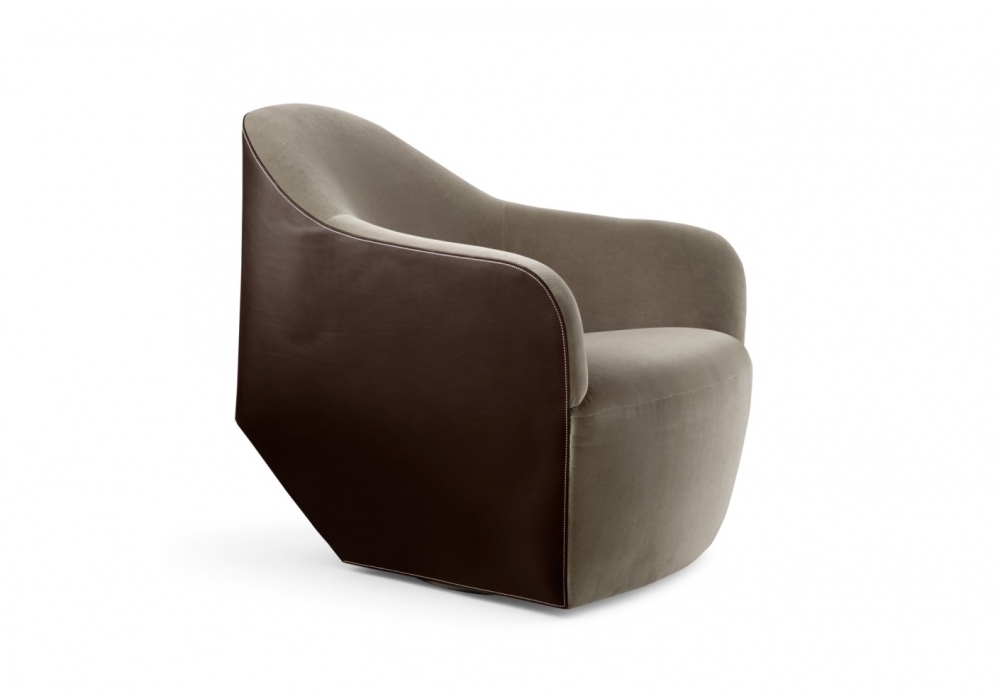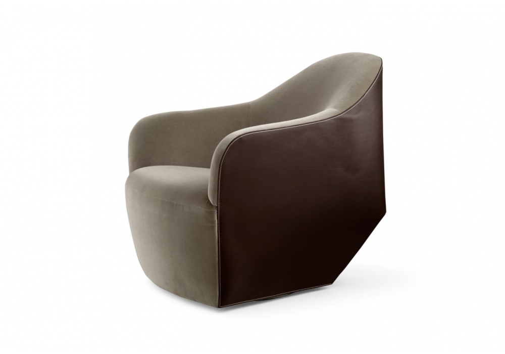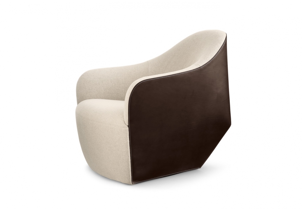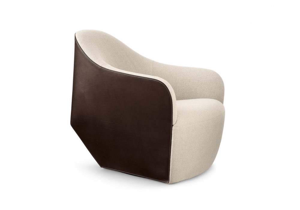 Isanka von Eoos für Walter Knoll entworfen, ist ein schöner Sessel mit Sitz und Rückenlehne aus Stoff oder Leder, die Schale ist aus Kernleder gefertigt. Drehfuß mit pulverbeschichtetem Mattschwarz. Auffallende Ledern und feine Stoffen treffen sich in sauberen, fließenden Linien. Synthetische Gleiter für Stein - und Teppichböden oder Filzgleiter für Holzböden.