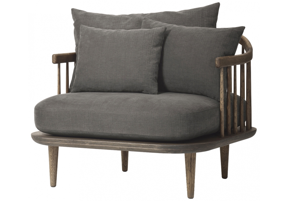 Fly SC1 von Space Copenhagen für &Tradition entworfen, ist ein Sessel mit Struktur und Untergestell aus geölter Eiche. Kissen aus HR-Schaum und Federn. Stoffbezug.