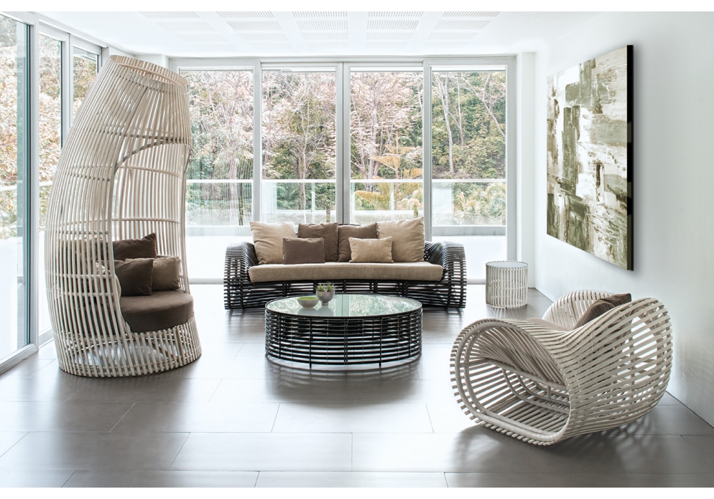 Lolah von Designer Kenneth Cobonpue entworfen, ist ein Indoor Sitz realisiert mit Rattan und Nylon. Verfügbar in zwei Ausführung und zwei Größen.