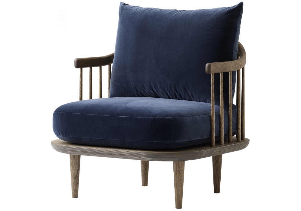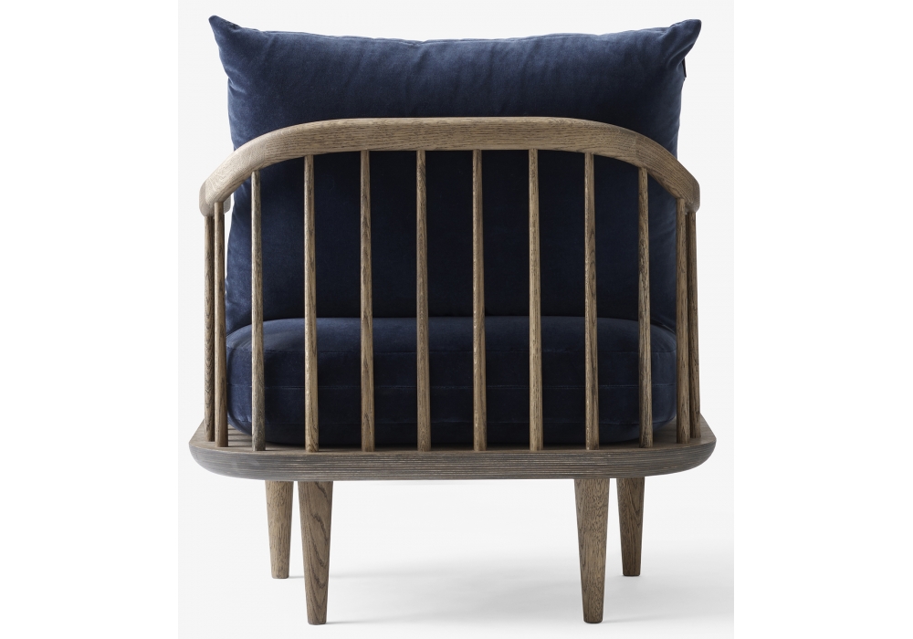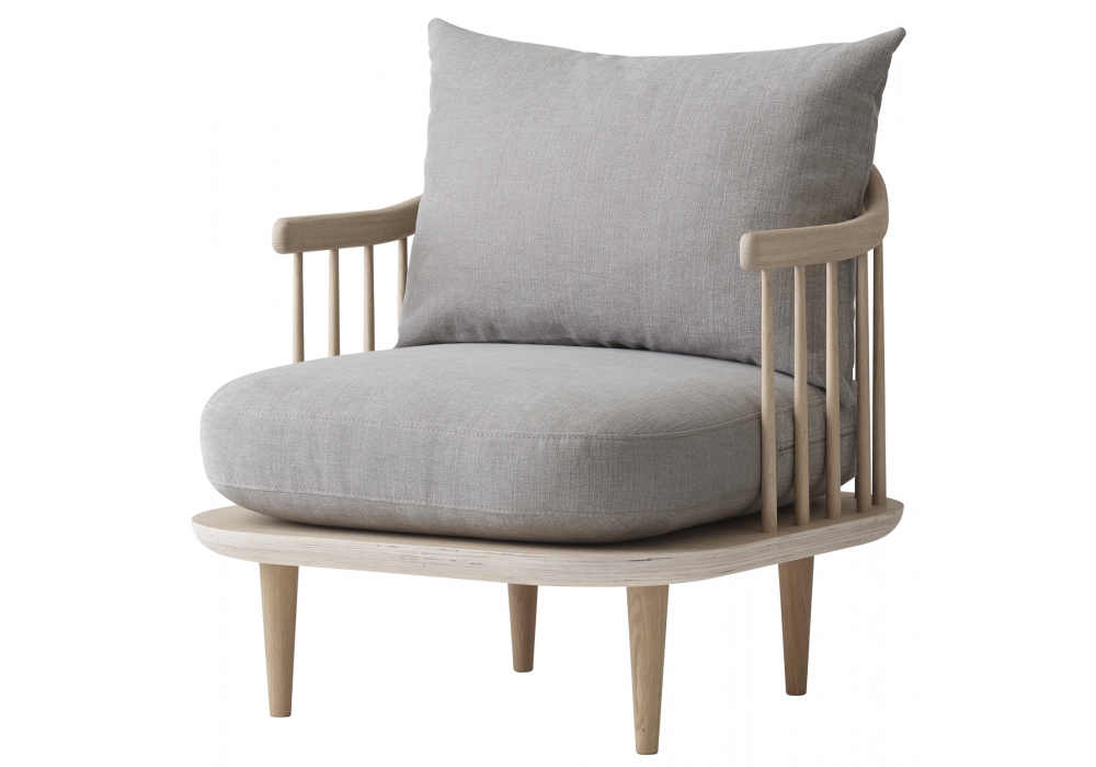 Fly SC10 von Space Copenhagen für &Tradition entworfen, ist ein Sessel mit Struktur und Untergestell aus geölter Eiche. Kissen aus HR-Schaum und Federn. Stoffbezug.