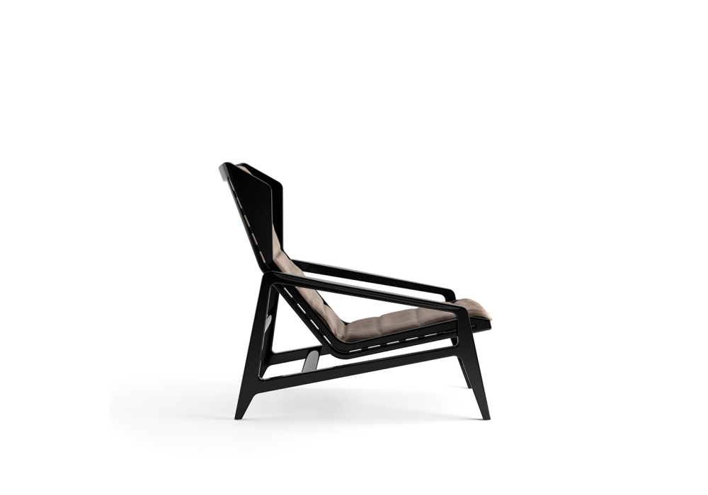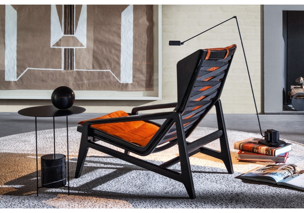 D.156.3 von Gio Ponti für Molteni&C entworfen, ist einer Sessel mit Armlehnen. Struktur aus glänzendem schwarz lackiertem Holz oder Canaletto Nussbaum. Die Riemen der Struktur sind verfügbar in Schwarz oder Militär-Grün Farbe. Die Polsterung ist verfügbar aus Stoff oder Leder.