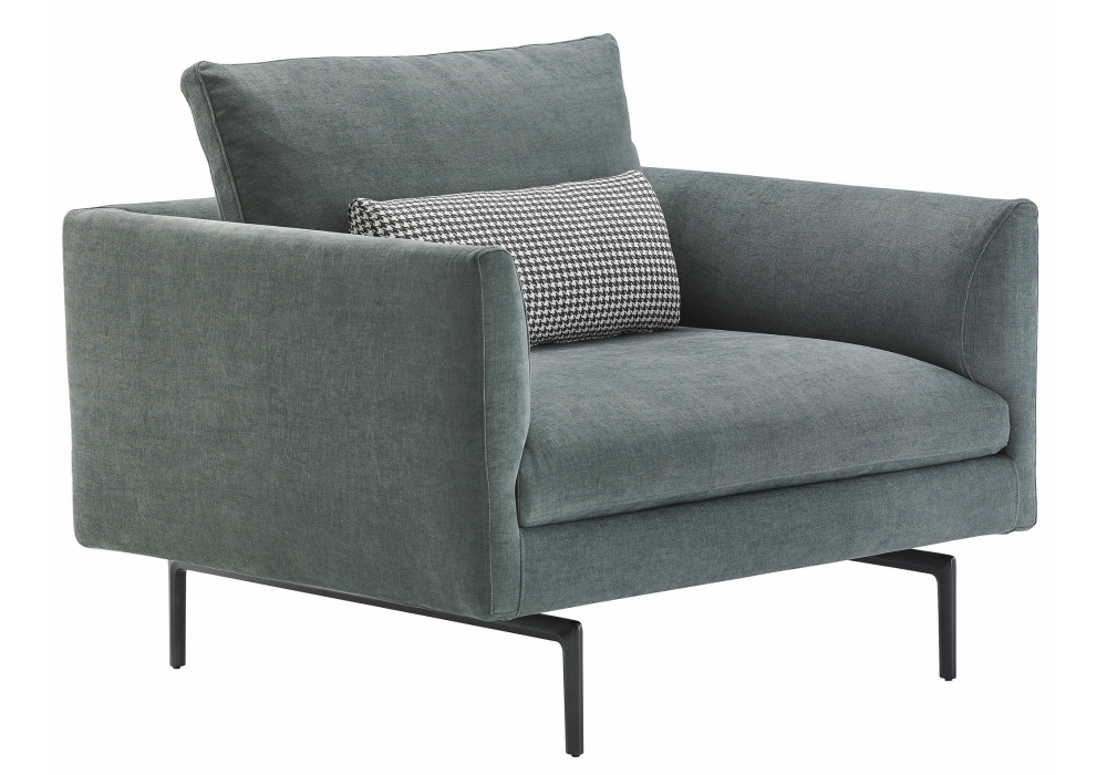 1333 Flamingo von Damian Williamson für Zanotta entworfen, ist ein Sessel mit Stahlgestell und Bezug aus Stoff oder Leder. Federung auf Gummibändern. Polsterung aus Polyurethan / wärmegebundener Polyesterfaser. Füße aus poliertem Aluminium, natur oder schwarz vernickelt oder schwarz lackiert. Verfügbar mit optionalen Kissen.