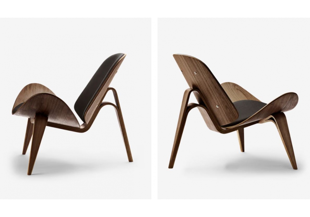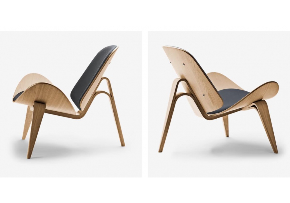 CH07 Shell Chair von Hans J. Wegner für Carl Hansen & Søn entworfen, ist ein Sessel mit Massivholzgestell in Buche oder Eiche verfügbar in verschiedenen Ausführungen. Gepolsterter Sitz und Rücken mit Stoff- oder Lederbezug.