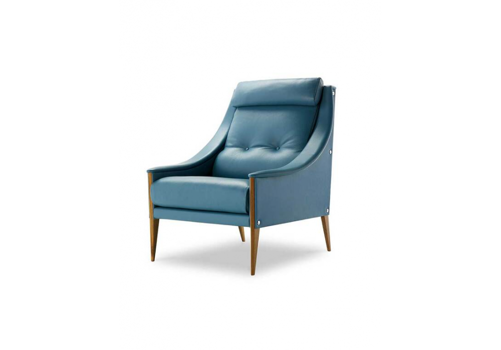 Dezza 48, von Gio Ponti für Poltrona Frau entworfen , ist ein Sessel mit einer in die Rückenlehne integrierten Kopfstütze aus Gänsedaunen, einer tragenden Struktur aus abgelagertem Buchenholz und einer Polsterung aus Polyurethanschaum. Die Füße sind in folgenden Ausführungen erhältlich: weiß oder schwarz lackierte offenporige Esche, Canaletto-Nussbaumfurnier. Polsterung in Pelle Frau® Leder oder Stoff.