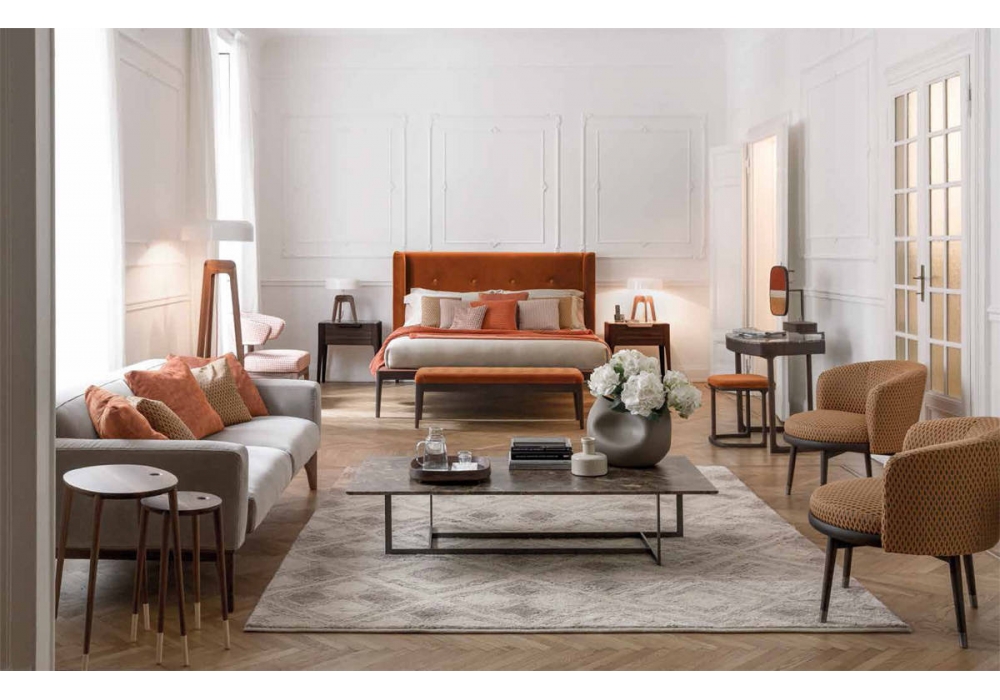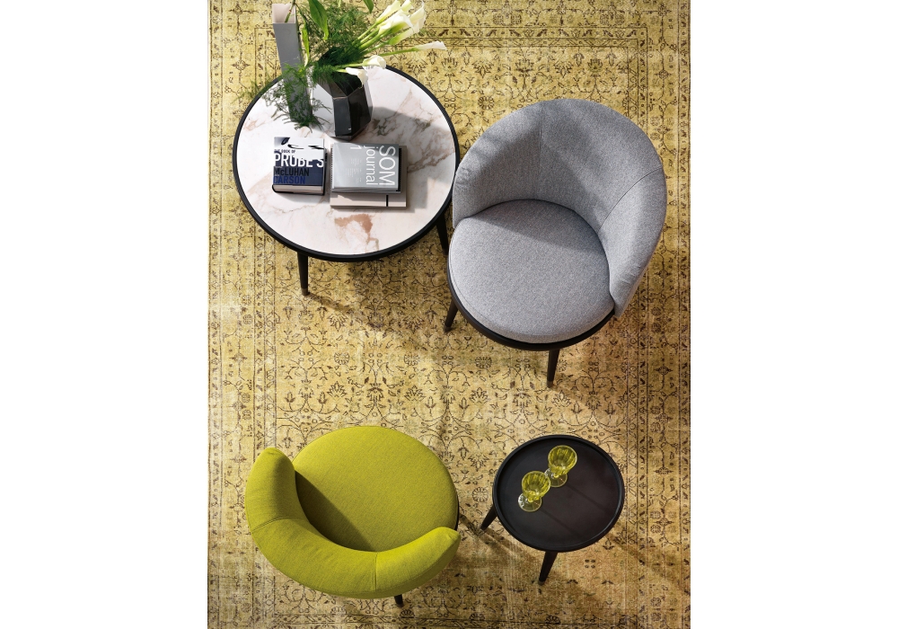 Daphne, von Emanuela Garbin & Mario Dell'Orto für Porada entworfen, ist einer Sessel mit Gestell aus massiver Esche verfügbar in verschiedenen Ausführungen. Polsterung in Stoff oder Leder. Metallfüßen.