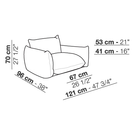 Marenco von Mario Marenco für Arflex entworfen, ist ein Sessel mit Überzug aus Stoff oder Leder. Füße aus Metall, Schwarz lackiert und Schutzgleiter aus schwarzem Nylon. Sitzenkissenpolsterung: Geformter Pu-Schaum in Unterschiedlicher Dichte / Faserbezug.