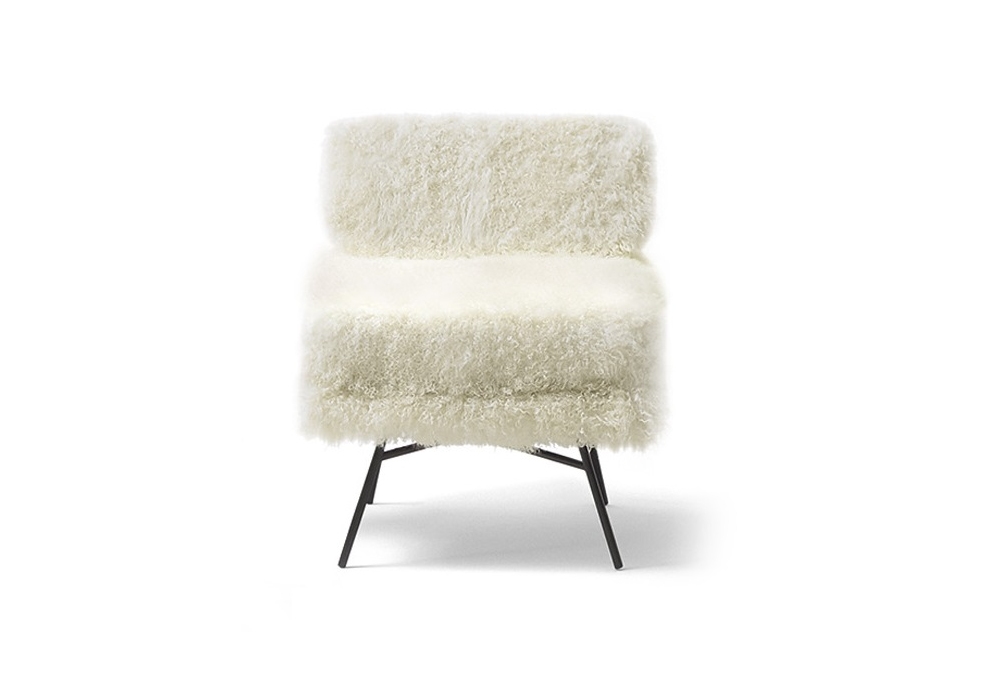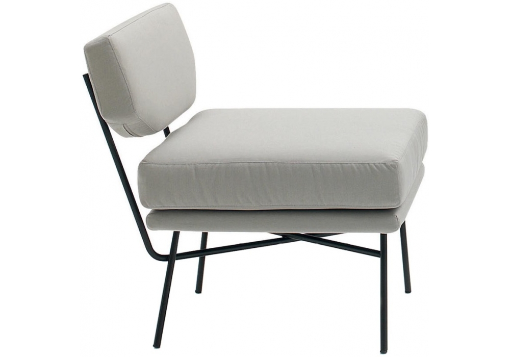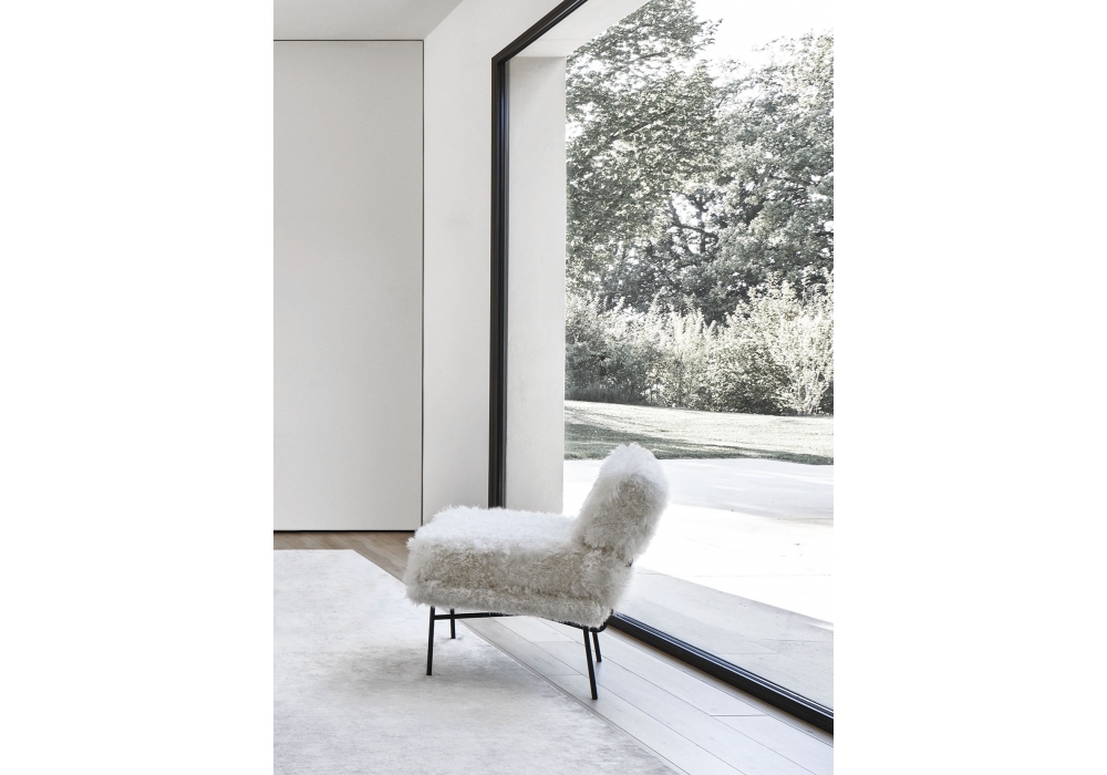 Elettra von B.B.P.R für Arflex entworfen, ist ein Sessel mit schwarz lackiertem Metallrahmen. Sitzkissen aus geformtem Polyurethan mit differenzierter Dichte / Polyesterfaser. Polsterung aus Stoff oder kurzhaarigem Fell.