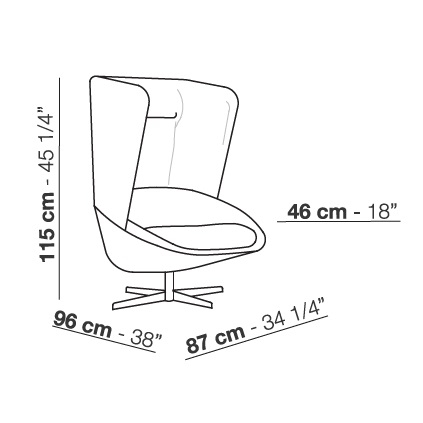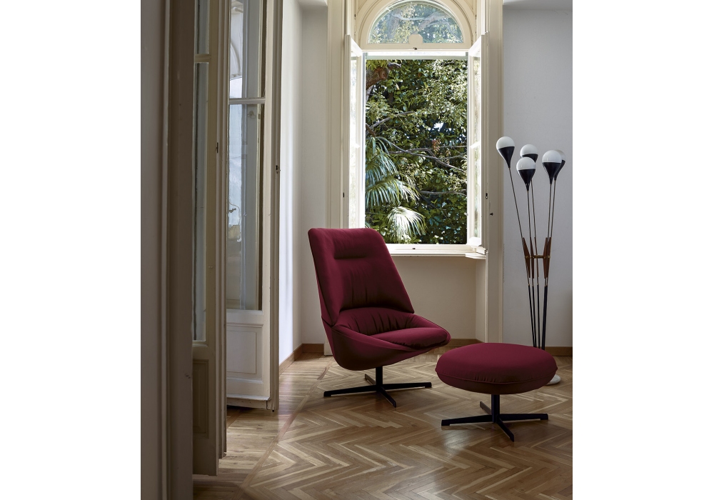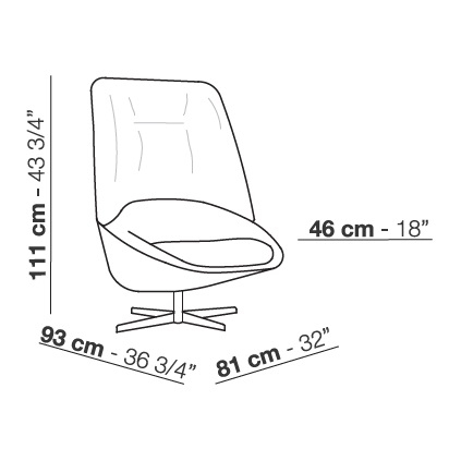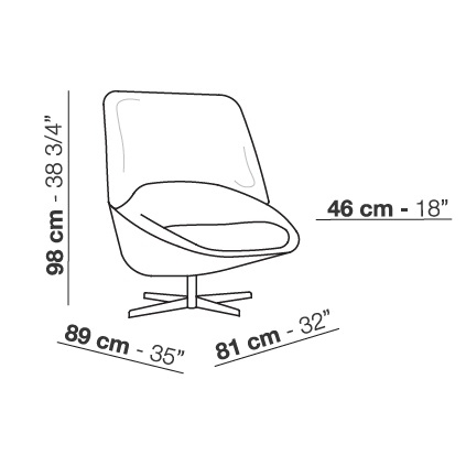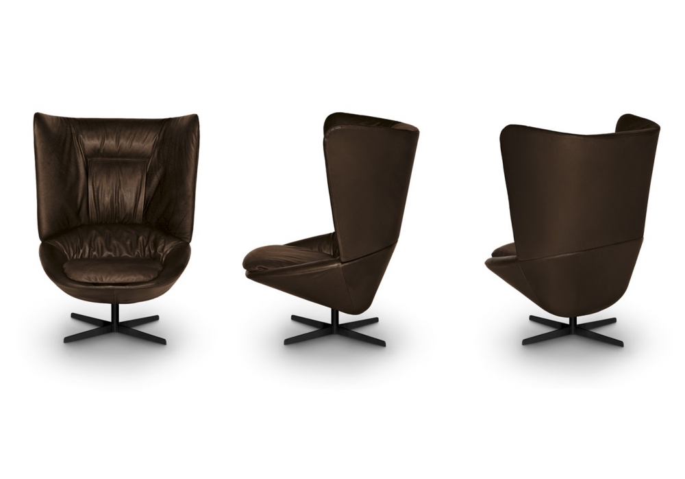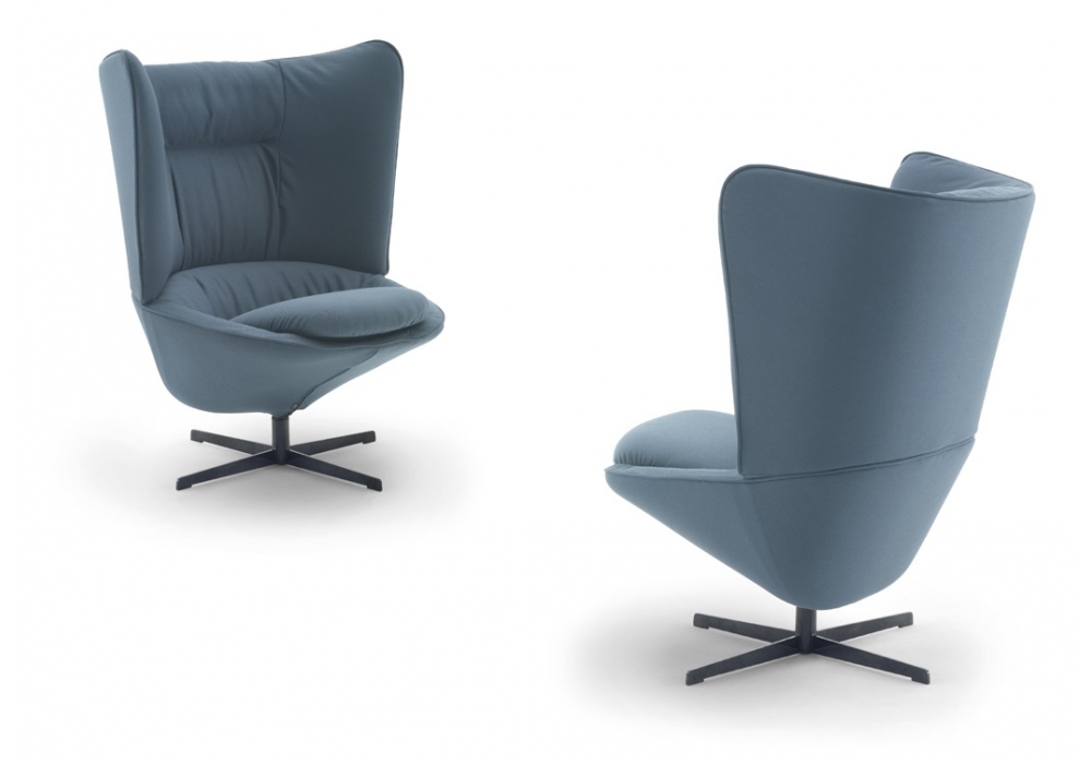 Ladle von Luca Nichetto für Arflex entworfen, ist ein Sessel mit 4-Speichen-Drehfuß aus schwarz lackiertem Metall und Gleitschutz aus schwarzem Nylon. Sitzkissen aus geformtem Polyurethan/Polyesterfaser. Bezug aus Stoff oder Leder. Verfügbar in drei Abmessungen.