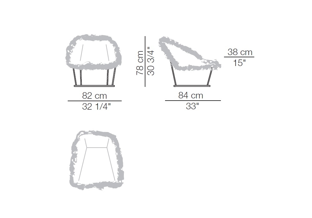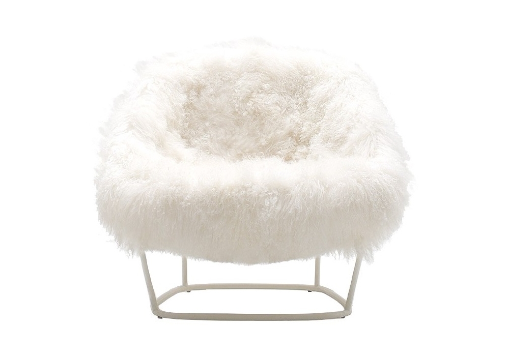 Katrin von Carlo Colombo für Arflex entworfen, ist eine hoher Sessel mit Gestell aus Weiß oder Schwarz lackiertes Metall. Überzug aus Pelz.