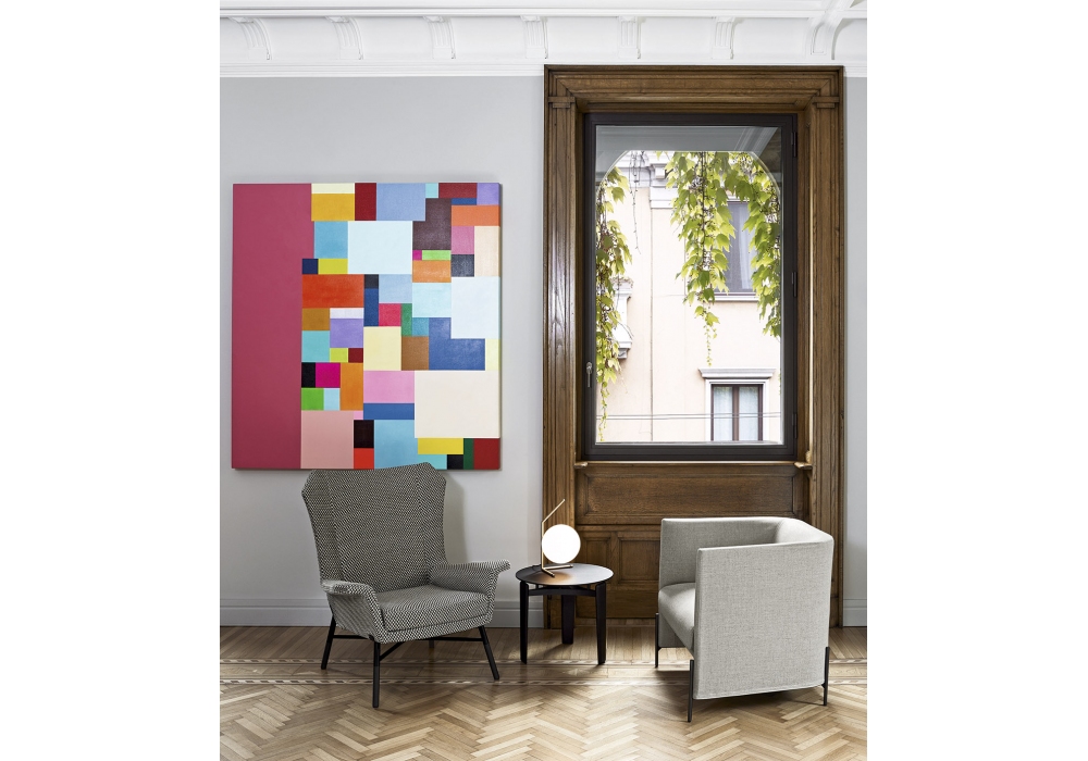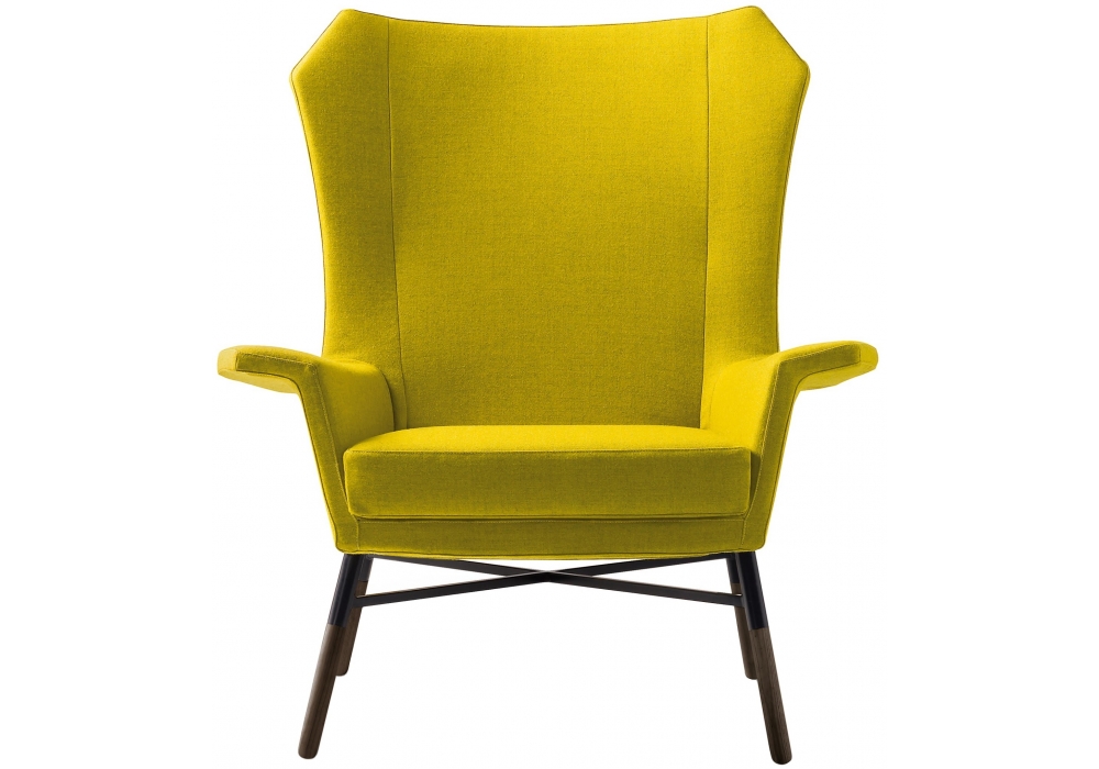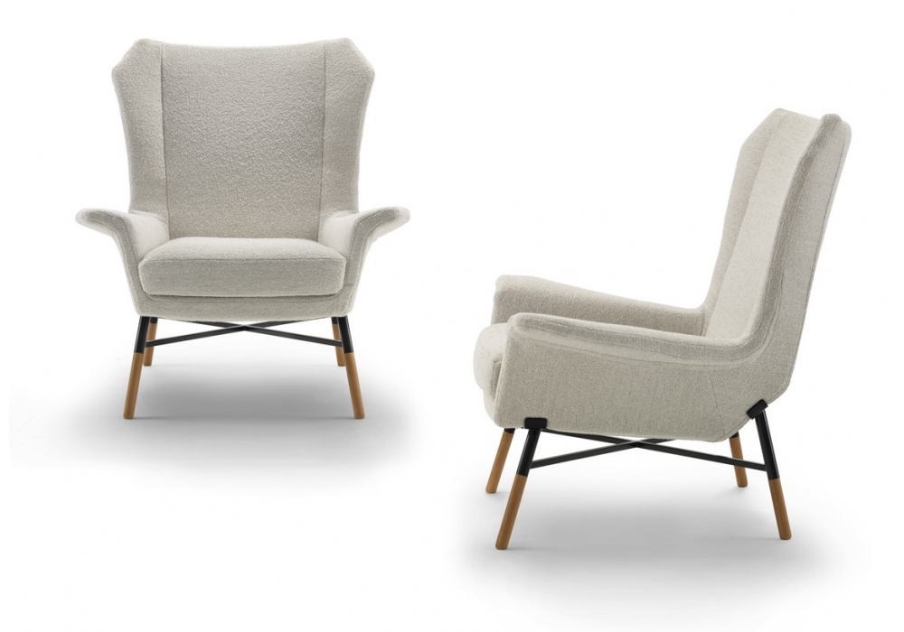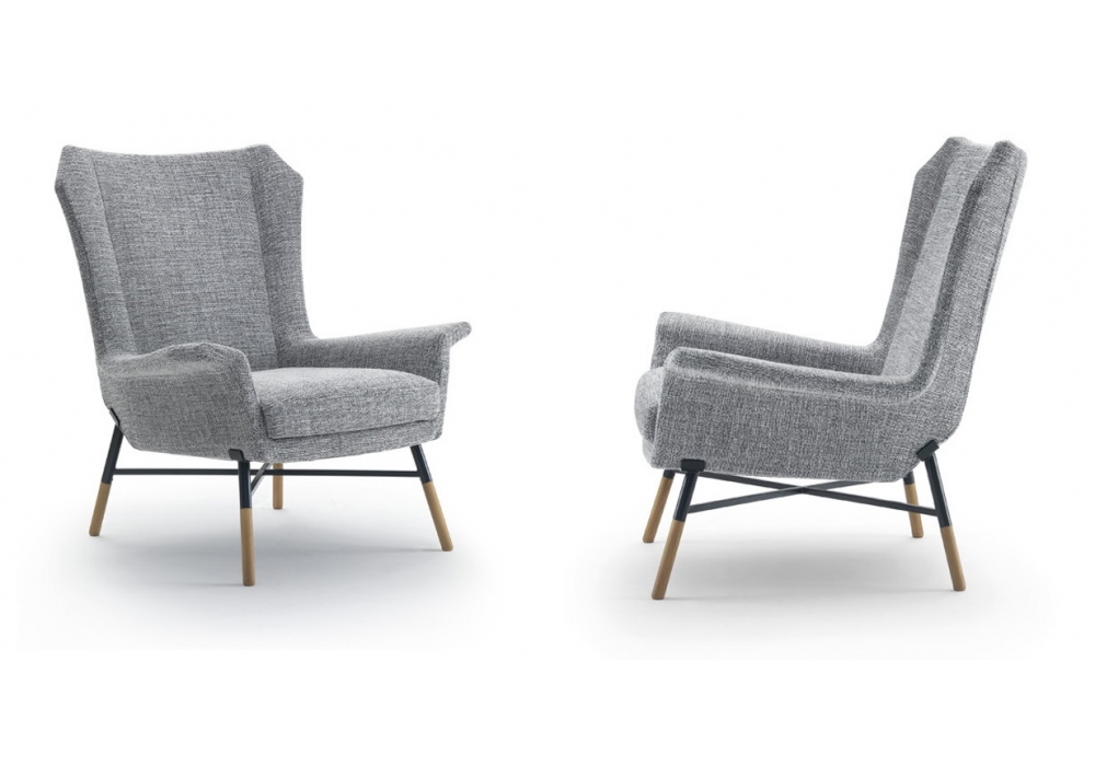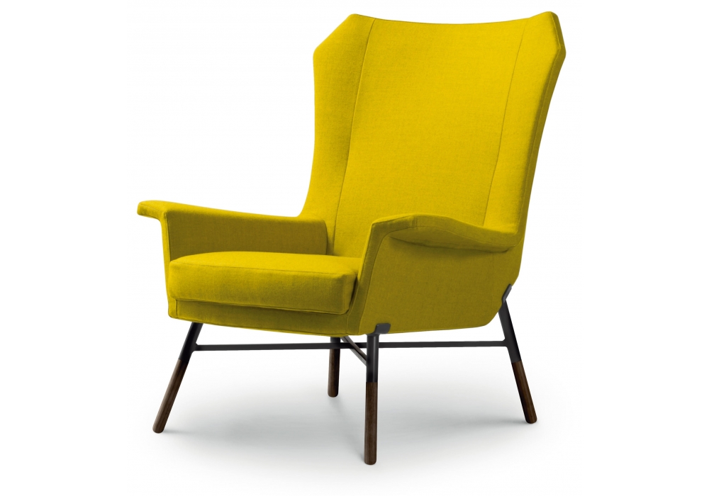 Giulietta von B.B.P.R für Arflex entworfen, ist eine Sessel mit Beine aus schwarz lackiertem Metall und Wenge, Eiche oder Schokolade gebeiztem Holz. Sitzkissen aus geformtem Polyurethan mit differenzierter Dichte / Polyesterfaser. Überzug aus Stoff oder Leder.
