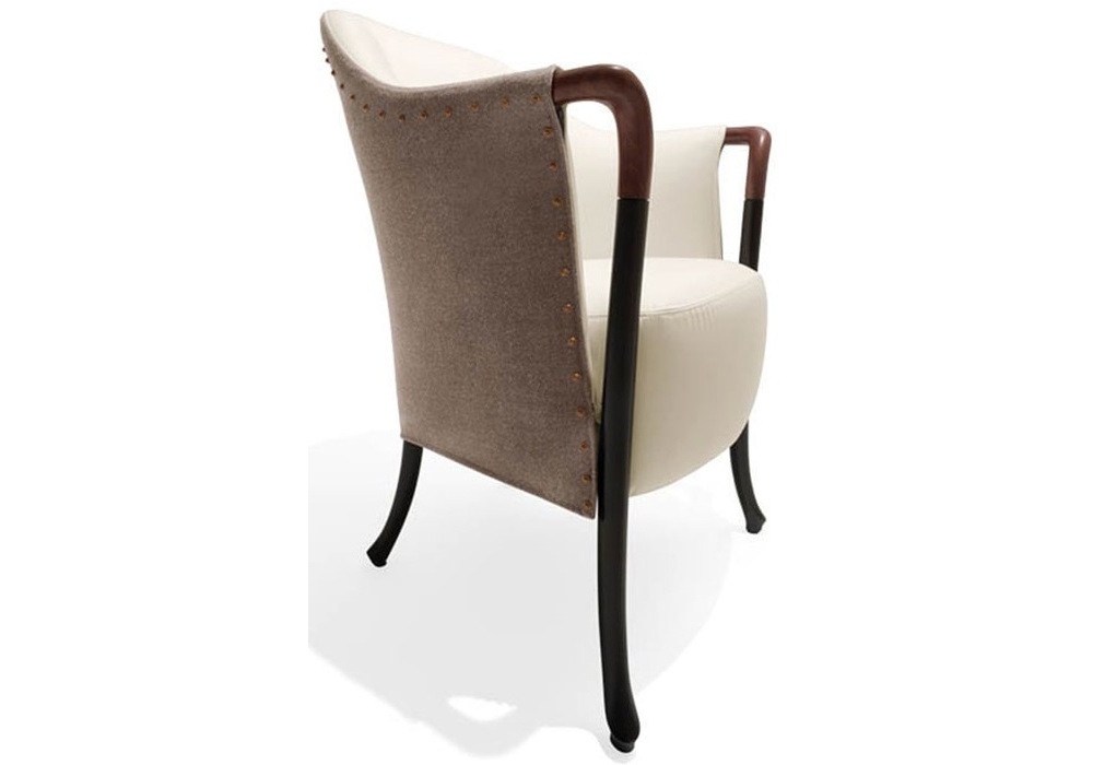 Progetti Fashion Kamet von Centro Ricerche Giorgetti + Agnona für Giorgetti entworfen, ist ein Armstuhl aus Buchenholz und Cashmere-Wolle mit Cabochon.