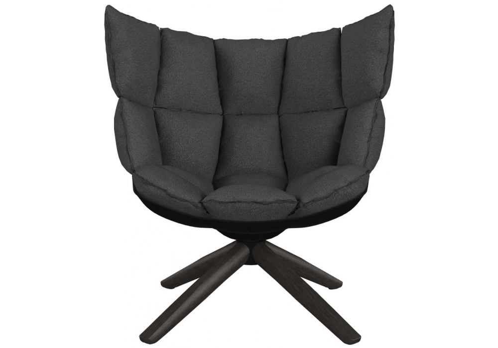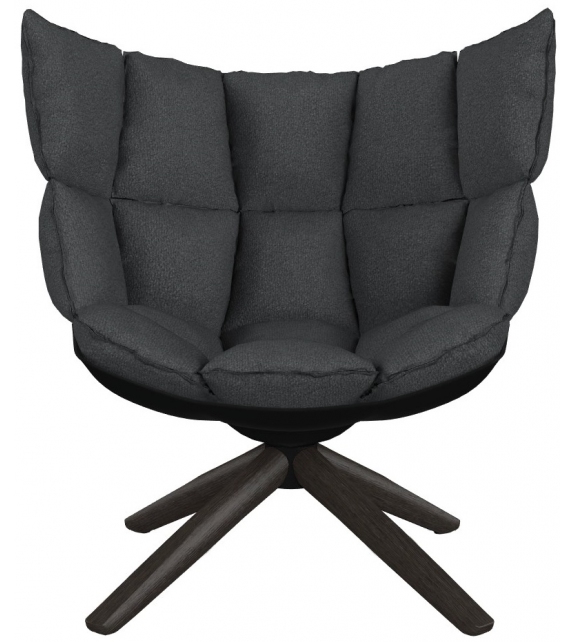 Husk von Patricia Urquiola für B&B Italia entworfen, ist ein Sessel mit einer Schale aus weißem, schwarzem oder taubengrauem Hirek-Kunststoffmaterial. Drehbare Basis aus Aluminiumdruckguss, Stahlprofilen, Hartpolyurethan oder Massivholz. Polsterung aus verschiedenen Stoffen oder Ledern.