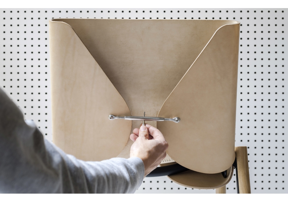 1085 Edition von Bartoli Design für Kristalia entworfen, ist ein Lounge Chair mit Eichenholzstruktur und Sitz und Rückenlehne aus Leder.