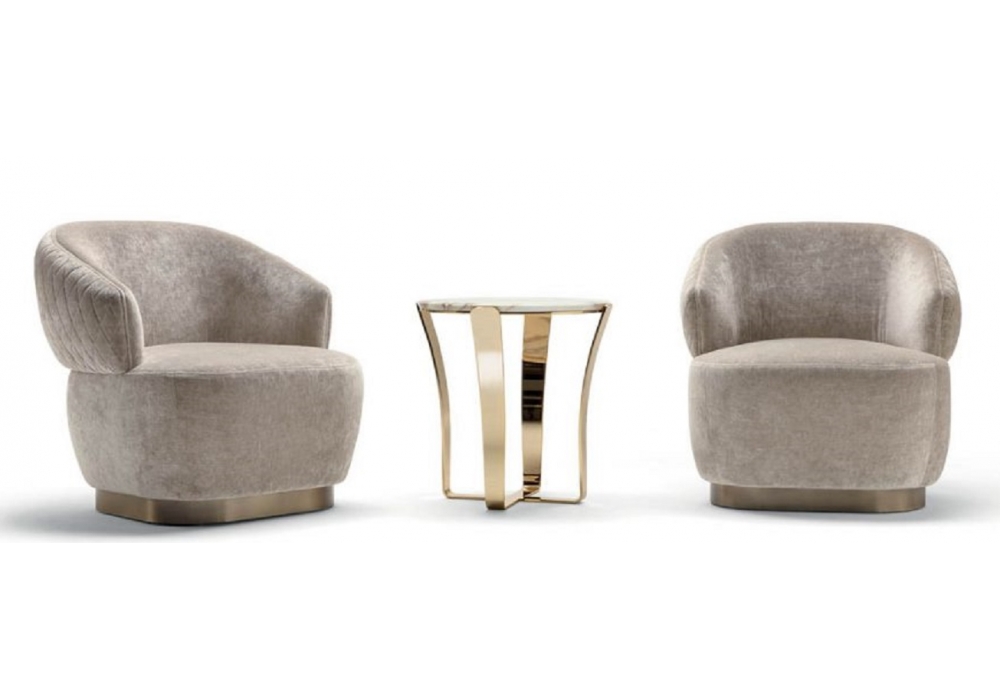 Sophie von Castello Lagravinese Studio für Opera Contemporary entworfen, ist ein Sessel mit Stoff- oder Lederbezug und Metallgestell, fest oder drehbar. Verfügbar in 2 Versionen: glatte oder gesteppte Rückenlehne.