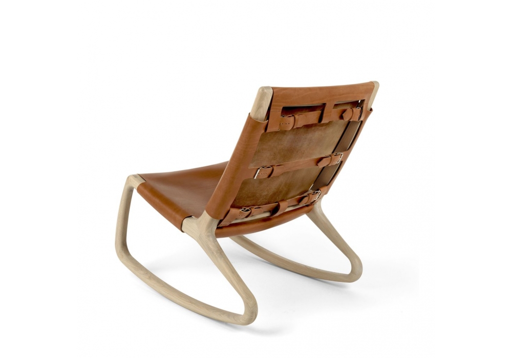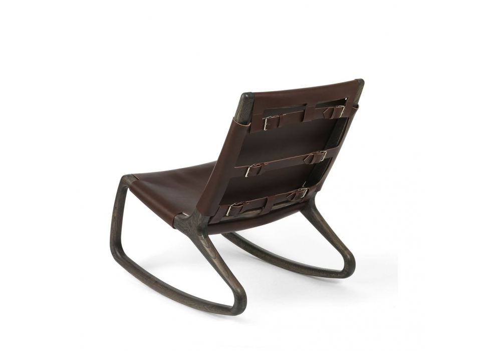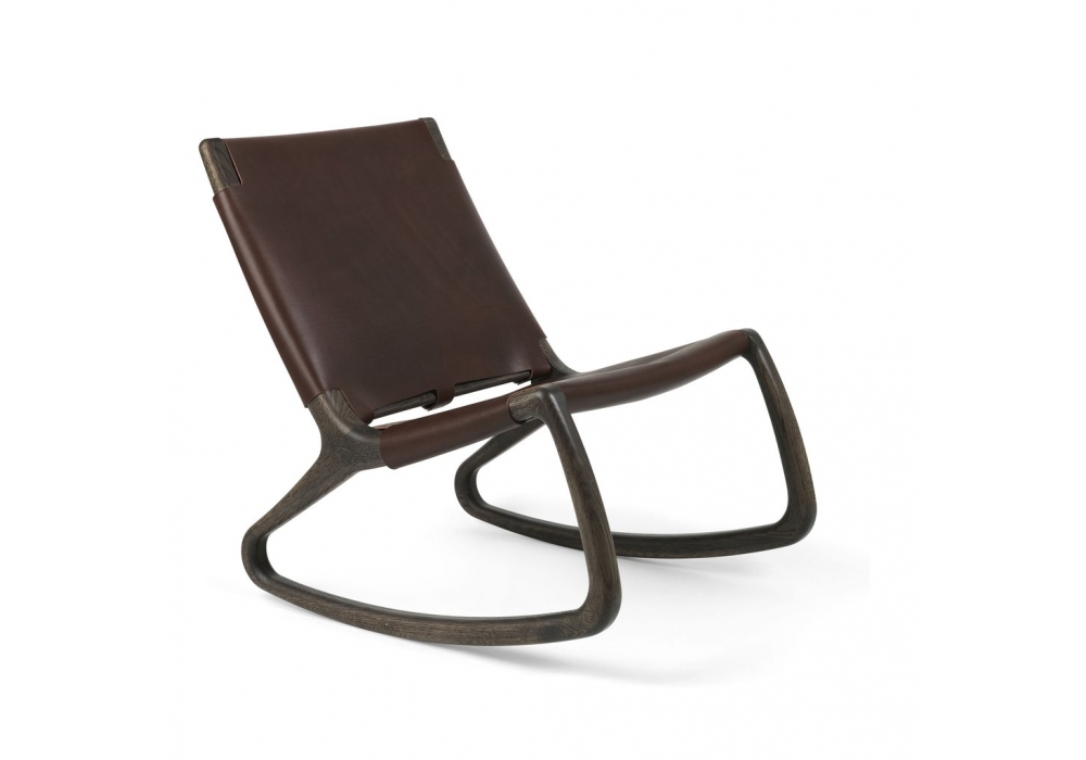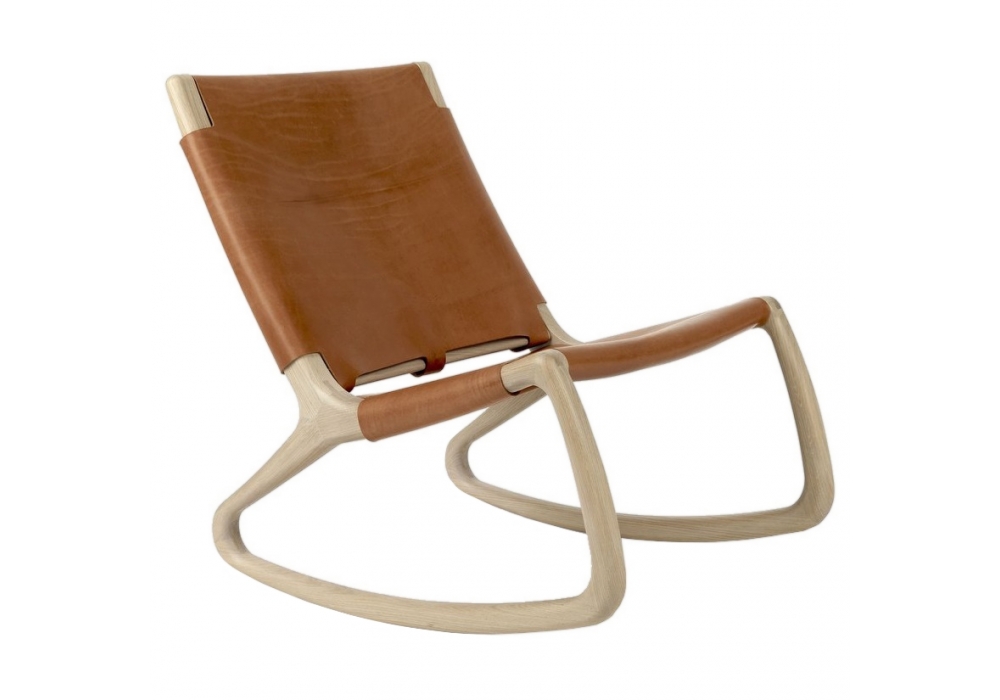 Rocker von Shawn Place für Mater entworfen, ist ein Schaukelstuhl mit Rahmen aus Eichenholz verfügbar in 2 verschiedenen Ausführungen und Lederpolsterung.
