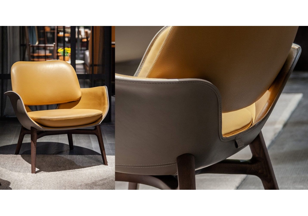 Martha von Roberto Lazzeroni für Poltrona Frau entworfen, ist ein Sessel mit Sitzschale aus geformten, harten Polyurethan und Eschenholzbeinen. Außenschale mit Saddle Extra Leder bezogen, die Innenseite ist verfügbar mit Pelle Frau Leder.