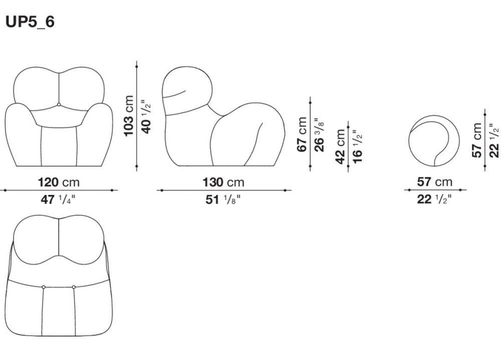 Serie UP 2000 von Gaetano Pesce für B&B Italia entworfen, ist ein Sessel mit Polsterung aus flexiblem Kaltpolyurethanschaum Bayfit® und nicht abnehmbarem Stoffbezug in mehreren Ausführungen.