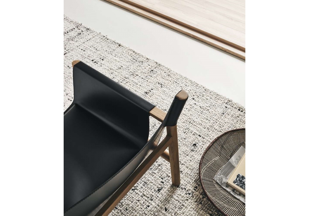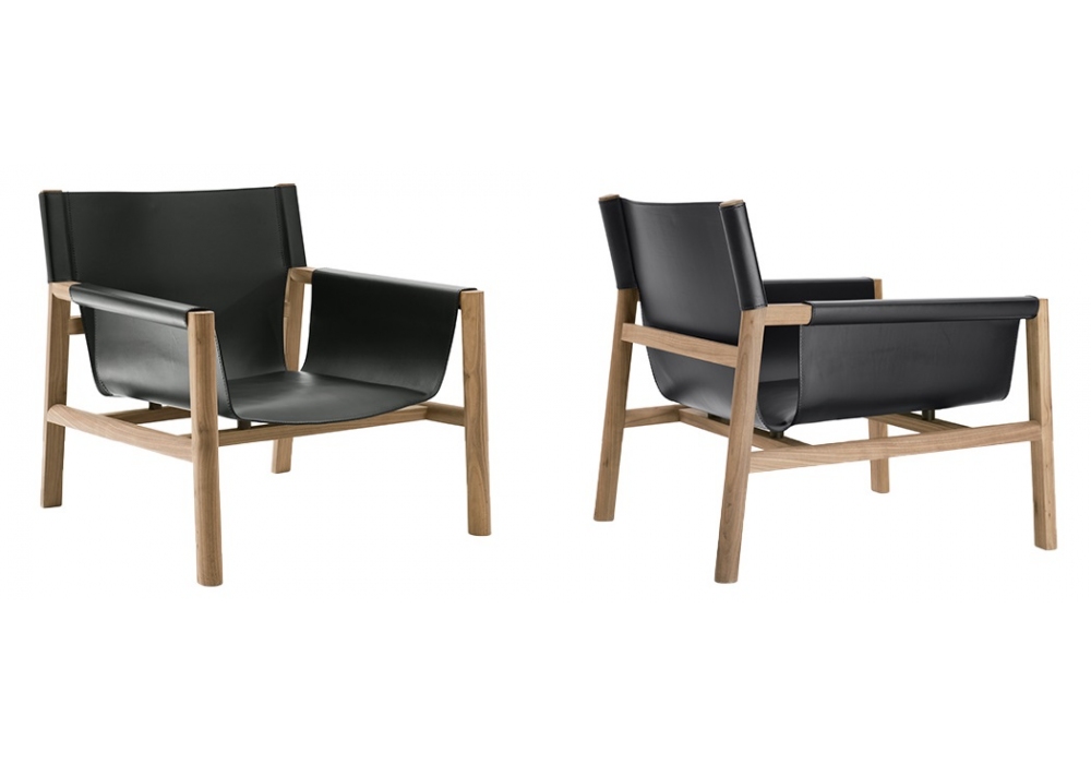 Pablo von Vincent Van Duysen für B&B Italia entworfen, ist ein Sessel mit Struktur aus massiv Holz und Lederbezug, verfügbar in verschiedenen Farben.