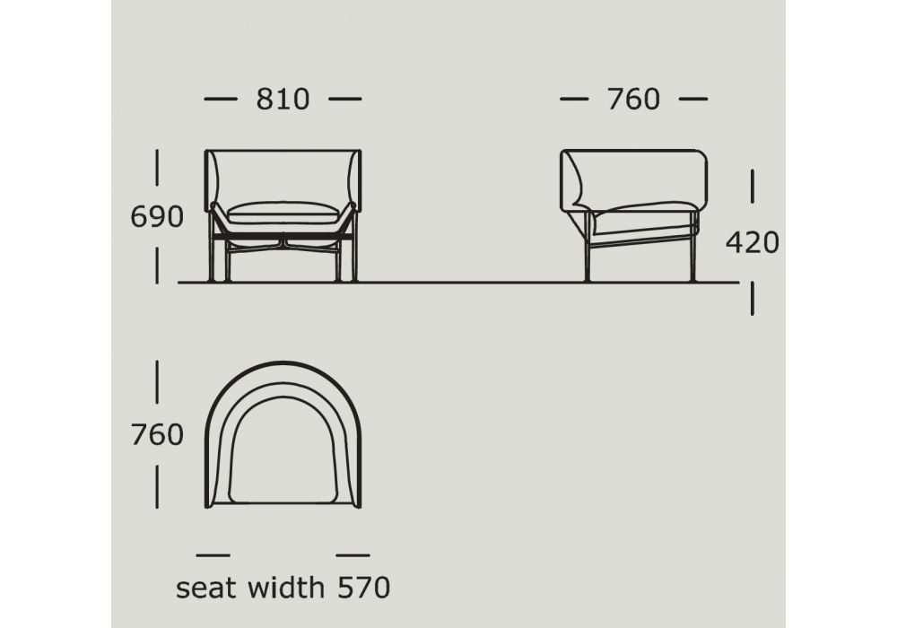 Collar, von 365 North für Wendelbo entworfene, ist ein Sessel mit schwarz brünierten Stahlbeinen und hochelastischer Schaumstoffpolsterung. Überzug verfügbar in verschiedenen Ausführungen.