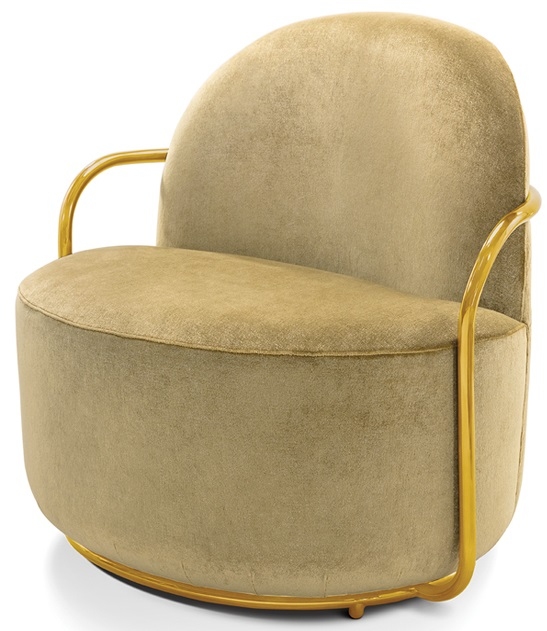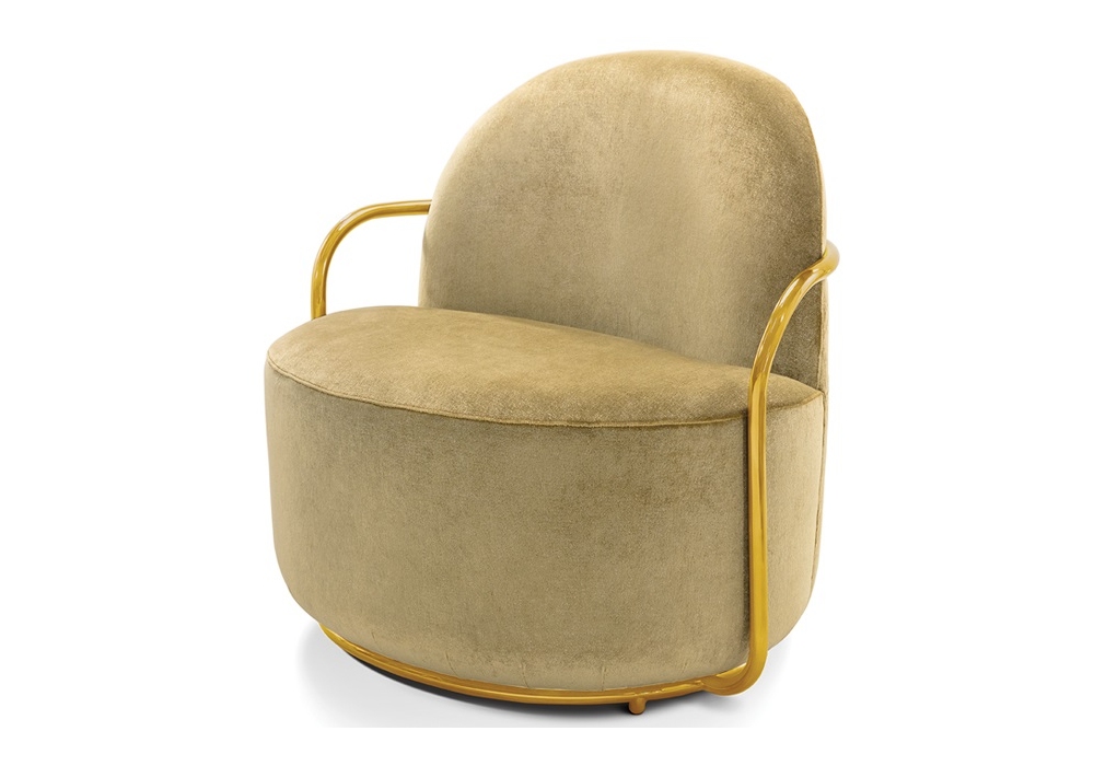 Orion von Nika Zupanc für Scarlet Splendour entworfen, ist ein Sessel mit einer Metallstruktur aus Gold oder Roségold. Verfügbar in mehreren Ausführung.