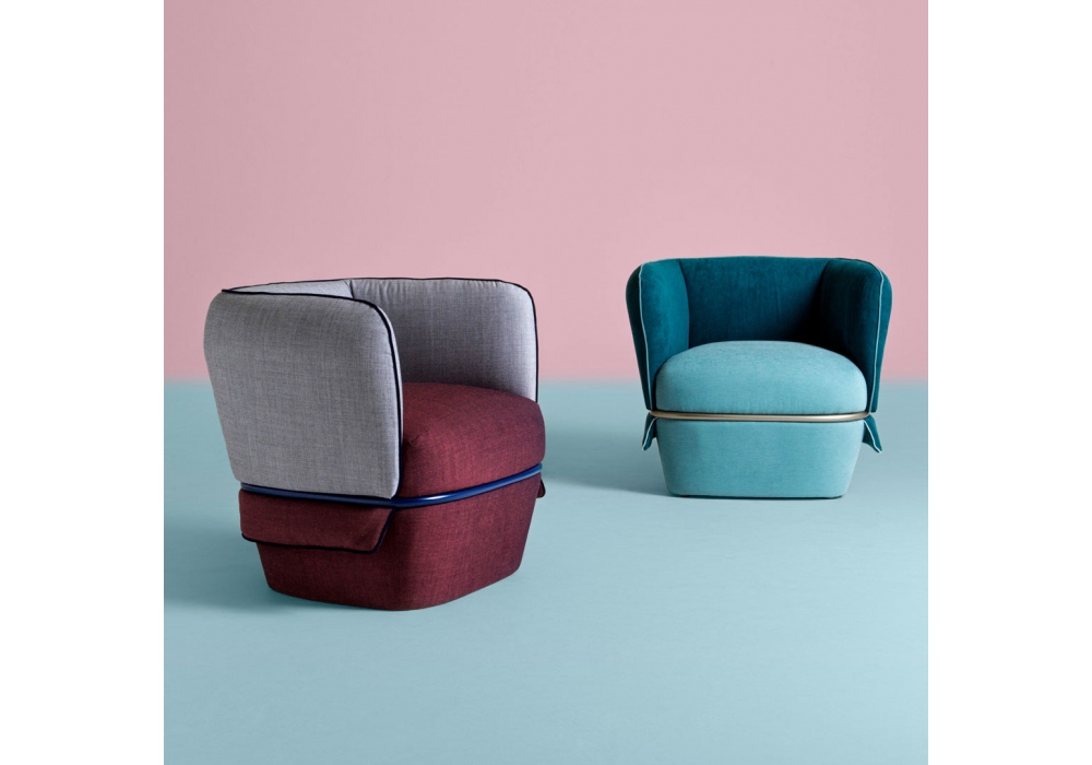 Chemise Firmata von Studio Lido für My Home Collection ist eine Poltrona-Realizzata mit struttura in legno rivestita in gomma poliuretanica ein Zitat unterscheiden und fodera in Fibra di Poliestere. La struttura è circoscritta da un anello in acciaio verniciato. Il rivestimento è in tessuto verfügbar in differenti finiture.