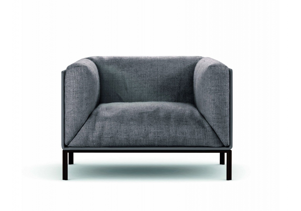 Clou von Angelettiruzza für My Home Collection entworfen, ist ein Sessel mit Holzstruktur, die mit Polyurethankautschuk und Polyesterfaser überzogen ist. Kissen, Sitz, Armlehnen und Rückenlehne sind mit unverformbarem Polyurethan in verschiedenen Dichten gepolstert und mit abnehmbarem Stoff bezogen. Die Basis ist aus lackiertem Stahlrohr. Clou ist in verschiedenen Ausführungen erhältlich.