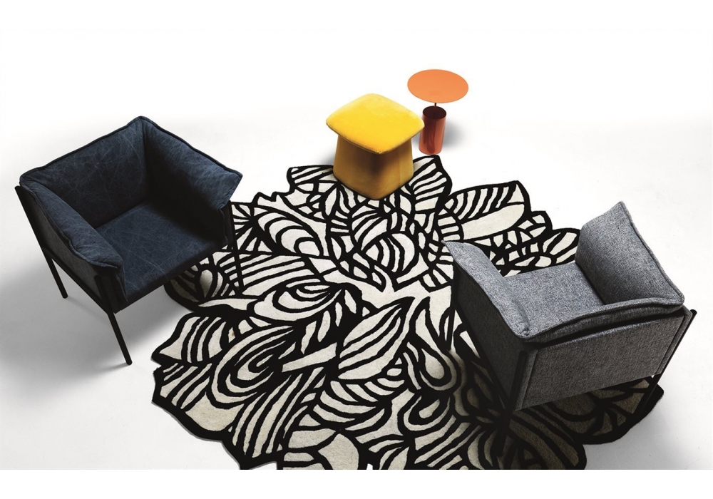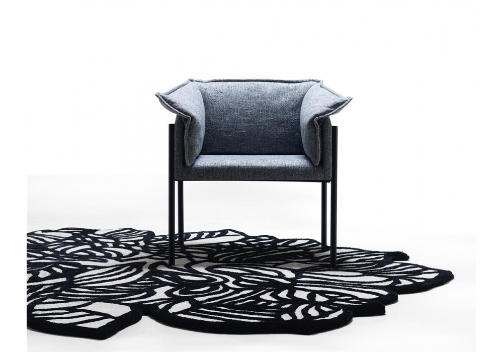 Carmen von Angelettiruzza für My Home Collection entworfen, ist ein Sessel mit tragender Holzstruktur, die mit Polyurethankautschuk überzogen ist. Die Armlehnen- und Rückenkissen sind aus Gänsedaunen, während der Sitz aus Polyurethanschaum mit Polyesterfaserfutter besteht. Die Polsterung ist aus Stoff in verschiedenen Ausführungen erhältlich. Die Beine sind aus lackiertem Stahlrohr.