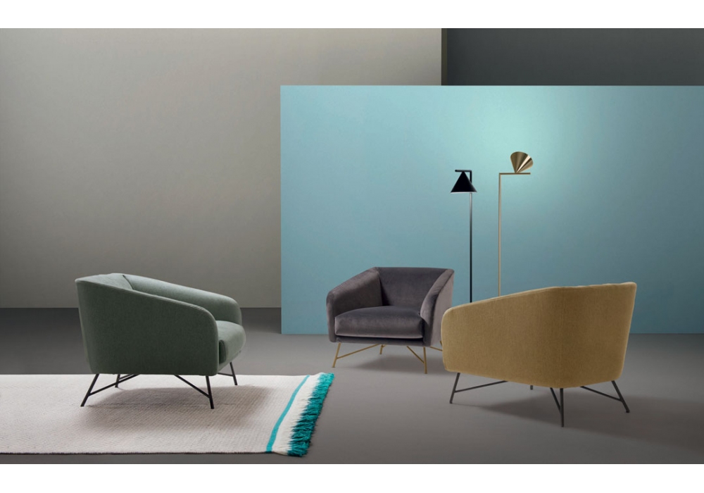 Betty von Angelettiruzza für My Home Collection entworfen, ist ein Sessel mit Holzstruktur, die mit Polyurethankautschuk unterschiedlicher Dichte und Polyesterfaserfutter überzogen ist. Die Polsterung ist in Leder oder Stoff in verschiedenen Ausführungen erhältlich. Die Basis besteht aus verchromtem oder lackiertem Stahl in verschiedenen Farben.