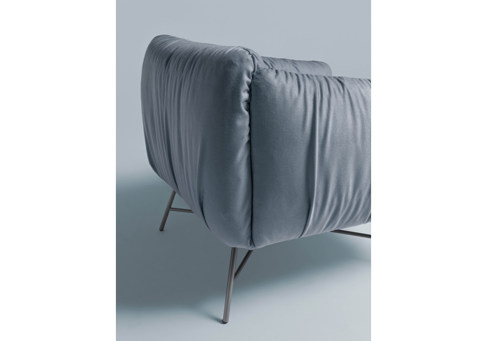 Jolie von Angelettiruzza für My Home Collection entworfen, ist ein Sessel mit einer Holzstruktur, die mit Polyurethankautschuk und Gänsefedern überzogen ist. Die Polsterung ist in Leder oder Stoff. Die Basis ist aus verchromtem oder lackiertem Stahl. Jolie ist in verschiedenen Deckel- und Sockelausführungen erhältlich.