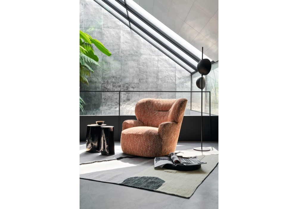 Loll von Paola Navone für Gervasoni entworfen, ist ein fester oder drehbarer Sessel mit Polsterung aus Polyurethanschaum und abnehmbarem Bezug in verschiedenen Ausführungen.