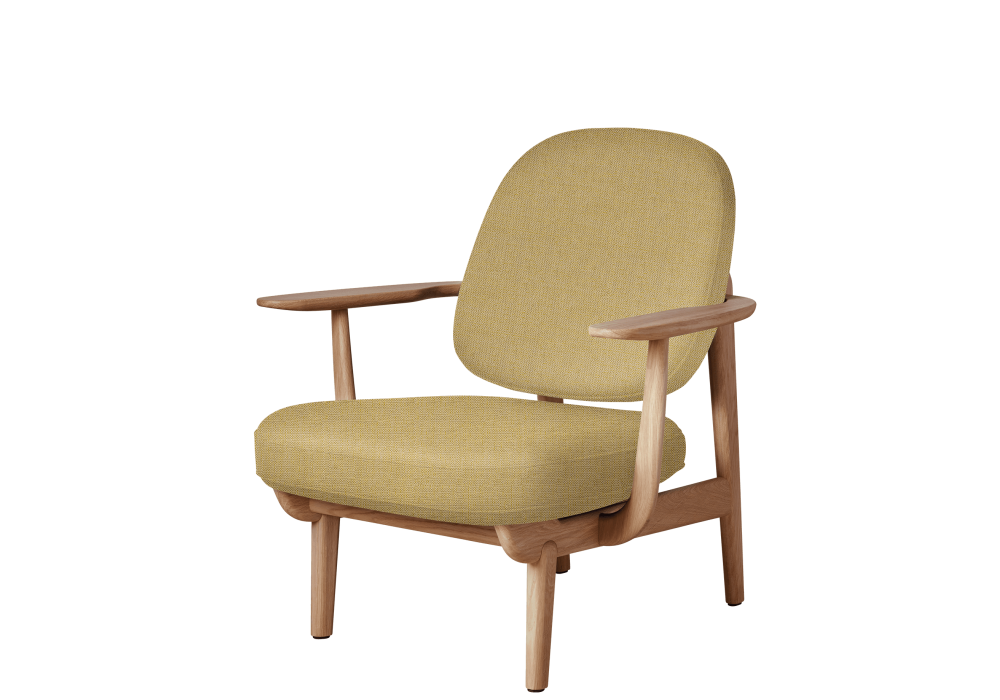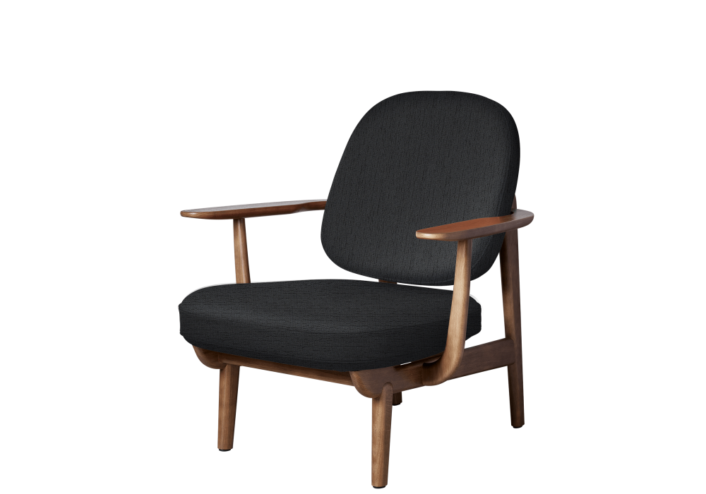 Fred™ von Jaime Hayon für Fritz Hansen entworfen, ist ein Sessel mit Holzsockel und Polsterung aus Stoff oder Leder. Verfügbar in mehreren Ausführungen.