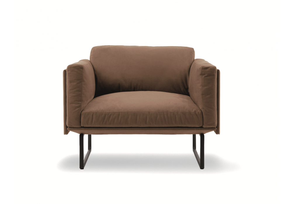 8 von Piero Lissoni für Cassina entworfen, ist ein Sessel aus Kissen, die mit recycelten, aufgeschäumten Polyesterfasern gefüllt sind, Metallbasis und Leder- oder Stoffpolstern. Verfügbar in mehreren Ausführungen.