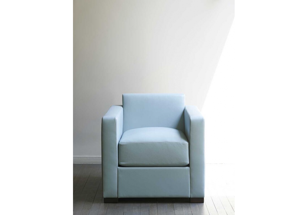 Linea A von Peter Marino für Poltrona Frau entworfen, ist ein Sessel mit einem Gestell aus massivem Buchenholz, einer Polsterung aus Polyurethanschaum und Polyesterwatte sowie einem Sitzkissen aus Gänsedaunen und Polyesterwatte mit einem stabilisierenden Polyurethanschaum-Einsatz. Der Bezug ist wahlweise aus Pelle Frau®-Leder (auch zweifarbig) oder Stoff gefertigt.