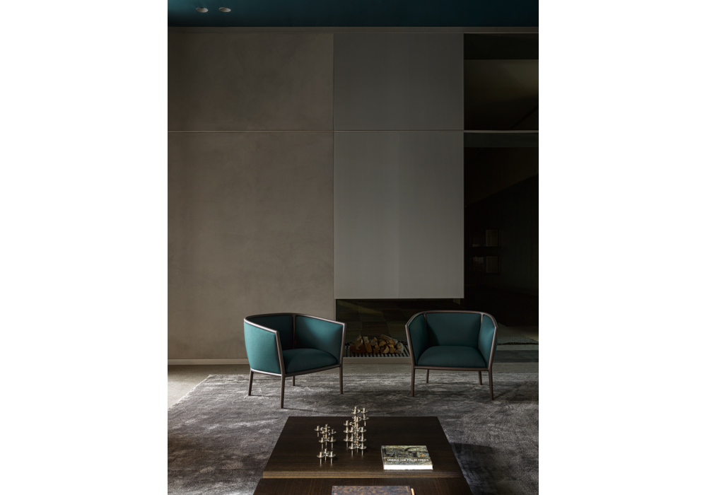 Margou von Vincent Van Duysen für Molteni&C entworfen, ist ein Sessel mit Gestell aus eukalyptus gebeiztem Massivholz oder schwarzer Eiche und Polsterung aus Leder oder Stoff. Verfügbar in mehreren Ausführungen.