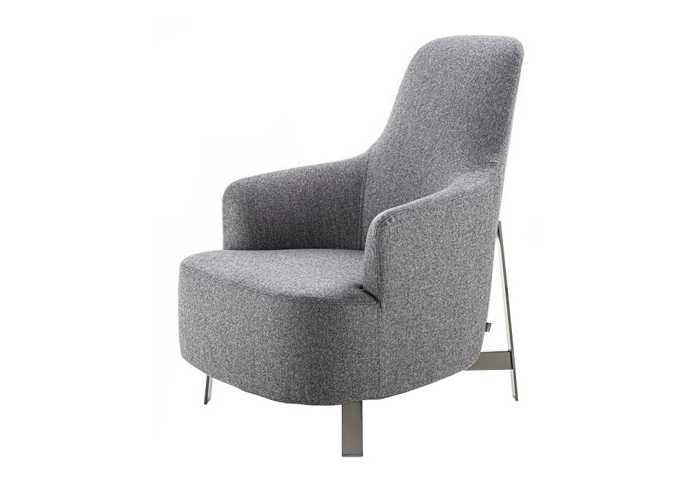 Copine Steel von Gabriele & Oscar Buratti für Porada entworfen, ist ein Bergère mit Metallgestell und Bezug aus Stoff oder Leder. Verfügbar in mehreren Ausführungen.