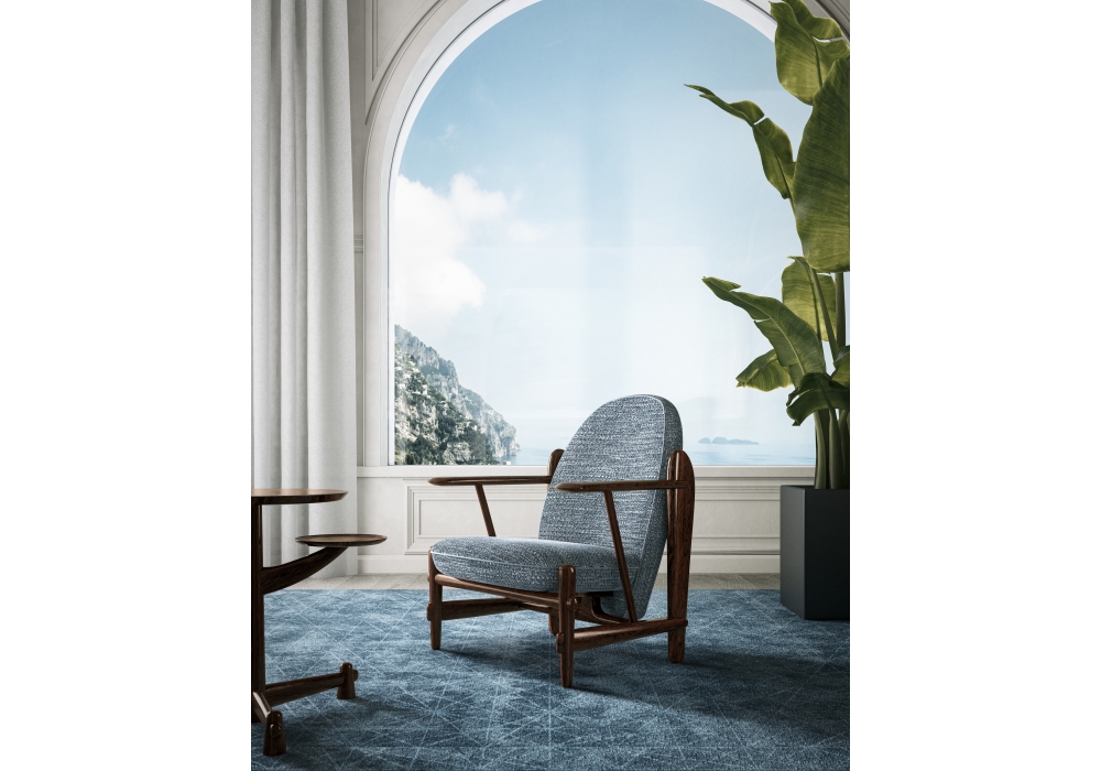 T-Bone von Jaime Hayon für Ceccotti entworfen, ist ein Sessel aus Nussbaum oder Esche. Sitz und Rückenlehne sind aus Pappelsperrholz. Die Sitz- und Rückenkissen sind mit Stoff- oder Lederbezug erhältlich.