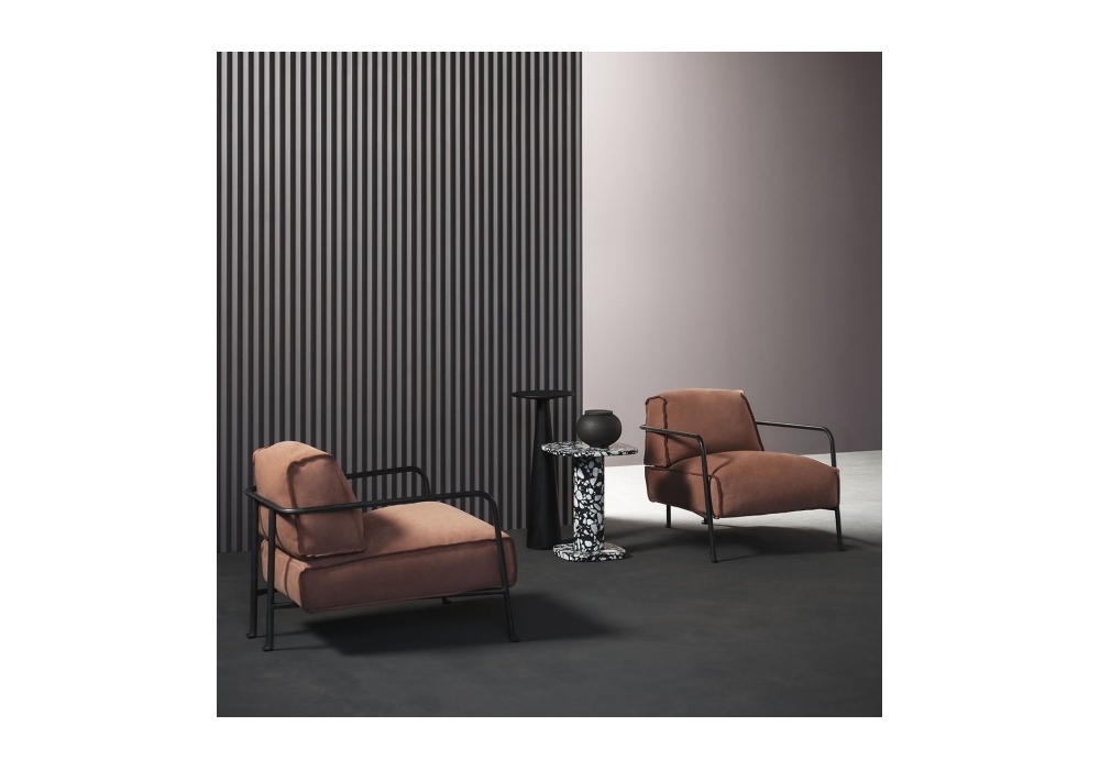 Bruxelles von Paola Navone für Baxter entworfen, ist ein Sessel mit Metallrohrgestell, bezogen mit natürlichem oder anthrazitfarbenem Leder. Sitz- und Rückenkissen aus Polyurethanschaum unterschiedlicher Dichte. Federung mit gewebten Gummibändern aus ummanteltem Gummi. Innenstruktur aus Pappelsperrholz. Bezug mit scharfen Kantennähten. Verfügbar in weichem Leder, Mouton, Orange Mongolia, White Mongolia, Blue Mongolia, Camel Mongolia oder Green Mongolia.