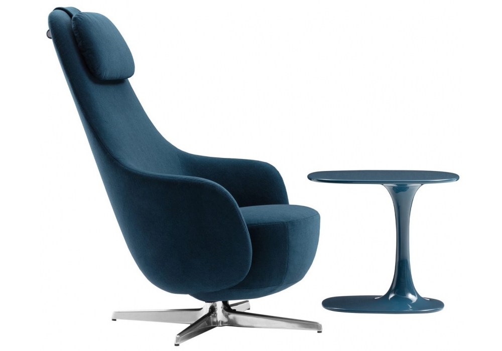 Harbour Laidback von Naoto Fukasawa für B&B Italia entworfen, ist ein Drehsessel mit Neigungsmechanismus und Untergestell mit vier Speichen aus Aluminium.Er hat einen perfekt im Rahmen versteckten Mechanismus, der die gleichzeitige Bewegung der Rückenlehne und des Sitzes ermöglicht. Harbour Laidback verfügt außerdem über eine höhenverstellbare Polsterkopfstütze mit Gegengewicht und kann mit einer kuscheligen passenden Fußstütze. Der Bezug ist in Leder oder Stoff.