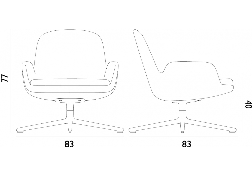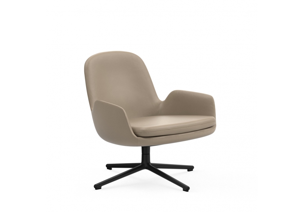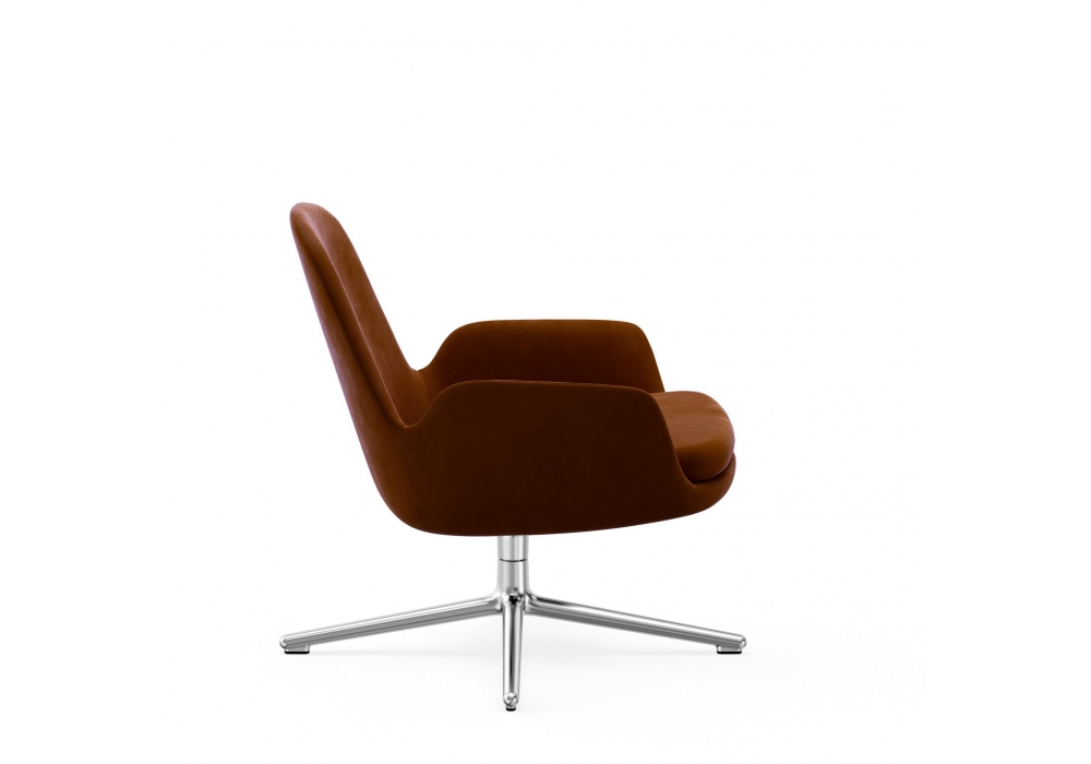 Era, von Simon Legald für Normann Copenhagen entworfen, ist ein Sessel mit Drehgestell aus blankem oder pulverbeschichtetem Aluminium. Rücken, Sitz und Armlehnen sind aus geformtem Polyurethanschaum, bezogen mit verschiedenen Stoff- oder Lederarten. Era ist in verschiedenen Ausführungen erhältlich.