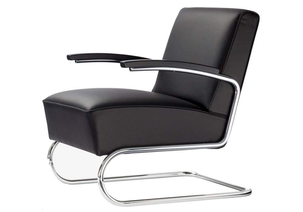 S 411 von Thonet entworfen, ist ein Sessel mit Gestell aus verchromtem Stahlrohr. Gepolsterter Sitz und Rückenlehne mit Stoff-, Leder- oder Fellpolsterung. Armlehne in Buche, in verschiedenen Ausführungen. Der Sessel ist auch in zwei Größen und mit der Möglichkeit erhältlich, eine Fußstütze in der gleichen Ausführung wie der Sessel hinzuzufügen.