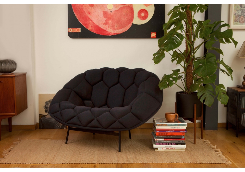 Quilt von Ronan & Erwan Bouroullec für Established & Sons entworfen, ist ein Sessel mit Struktur aus schwarz pulverbeschichtetem Stahl und Schaumstoffeinlagen. Nicht abnehmbarer Bezug in verschiedenen Ausführungen.
