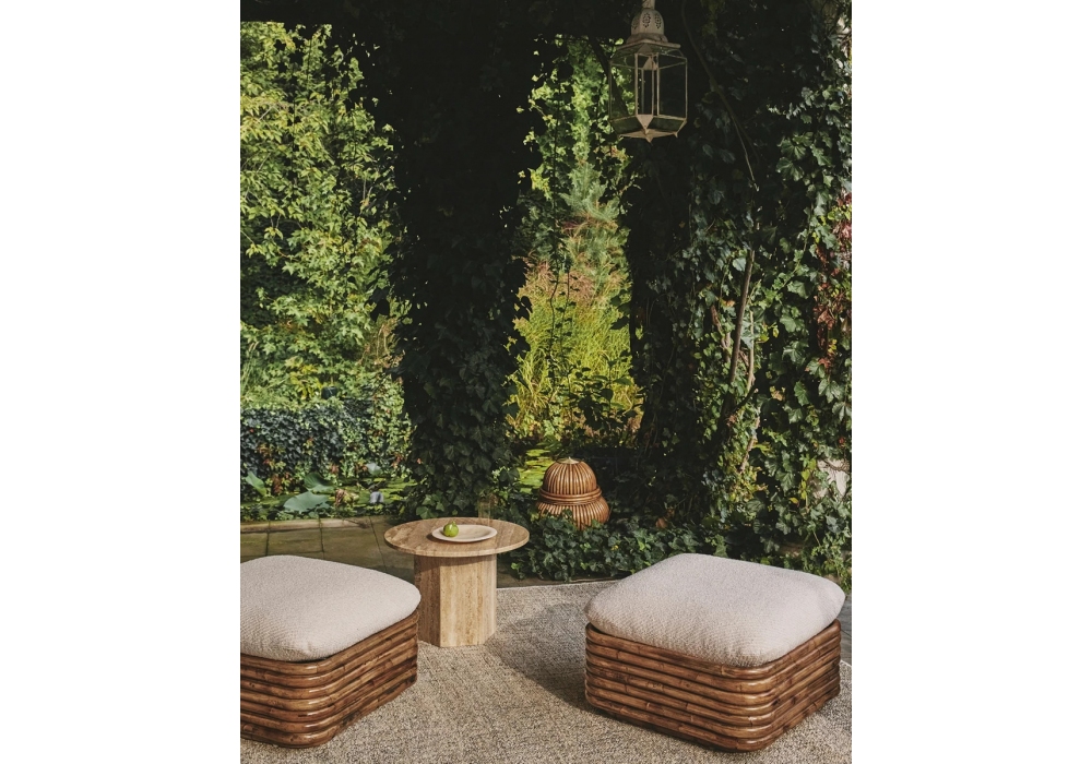 Bohemian 72 von Gabriella Crespi für Gubi entworfen, ist ein Sessel mit Rattanbasis und Stoffbezug.