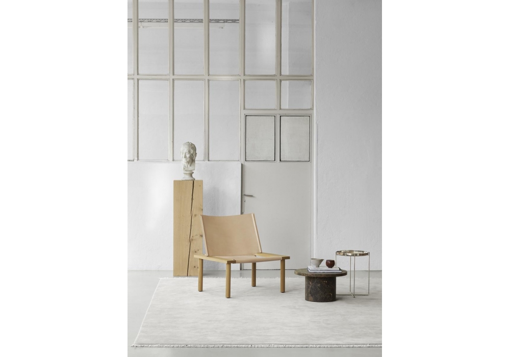 Ilma von Jonas Lutz für E15 entworfen, ist ein Sessel mit Holzstruktur, ist aus europäischer Eiche oder Nussbaum gefertigt und mit einem weichen und robusten Geschirr aus Natur-, Brandy- oder schwarzem Leder gekoppelt.
